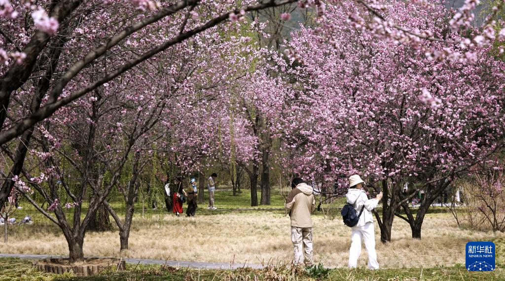 4月4日,游客在北京国家植物园赏花。新华社记者 李欣 摄