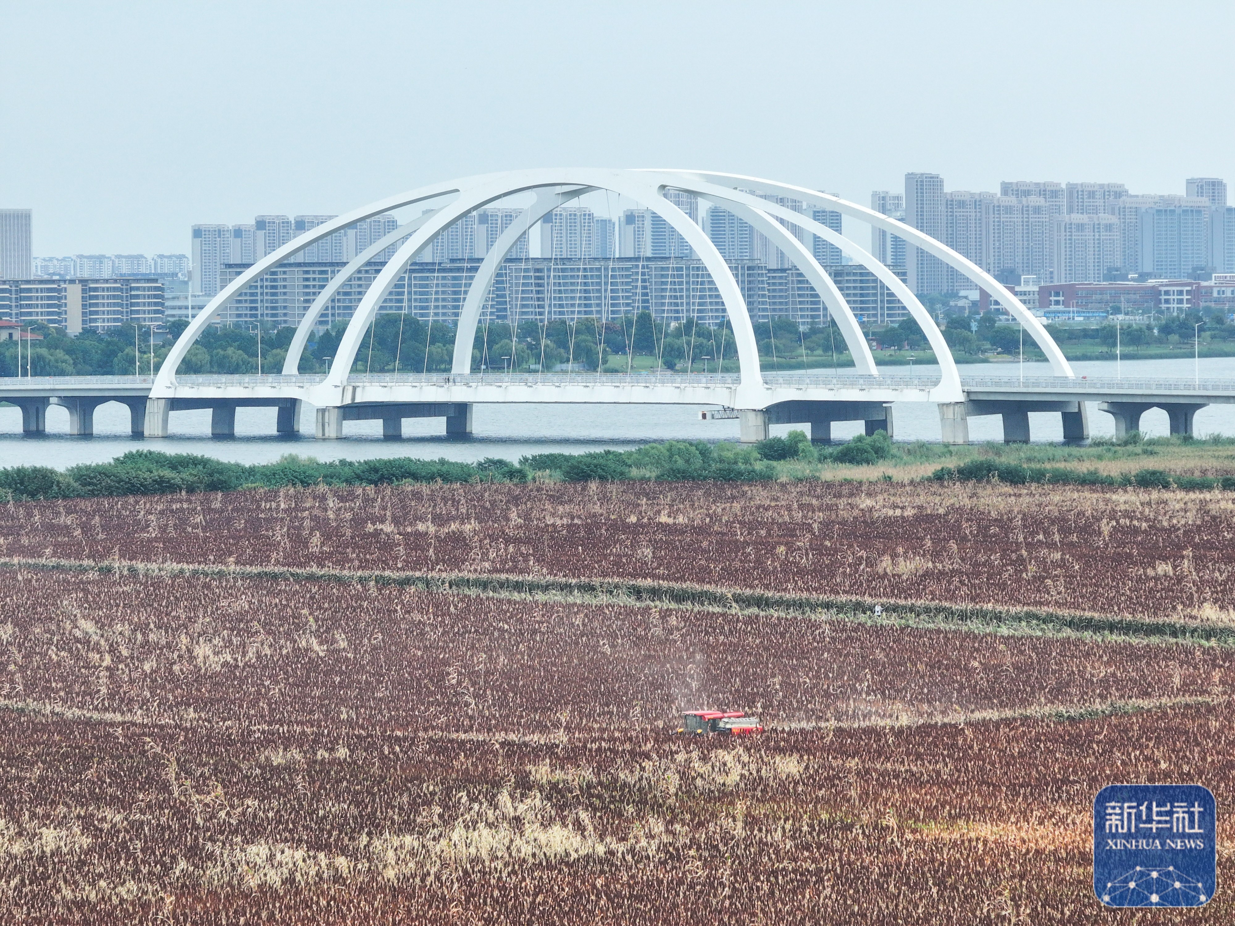 近日,江苏农垦江心沙农场位于常州金坛长荡湖和钱资湖畔外拓基地的8000余亩高粱陆续成熟,迎来采收季。成片的高粱映红田野,游人在安全地带打卡拍照,远处收割机来回穿梭,呈现出生动喜人的丰收图景。据介绍,该基地位于金坛“陌上花开”生态环境整治项目地段内,经过多年努力,“农业+旅游”现代都市近郊农业公园雏形初现。