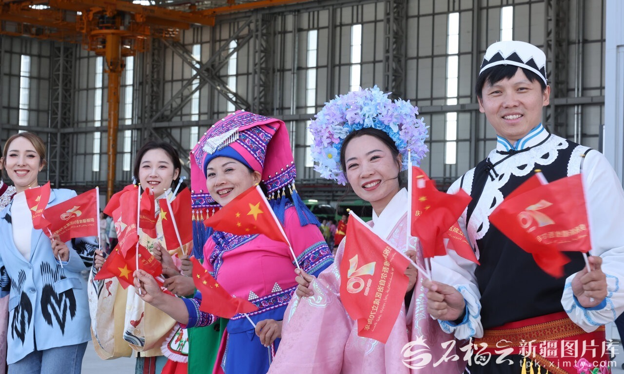 中共中央总书记、国家主席、中央军委主席习近平率中央代表团9月23日下午乘专机抵达乌鲁木齐,出席新疆维吾尔自治区成立70周年庆祝活动。自治区各族群众代表身着节日盛装,挥动红旗和五彩花束,跳起欢快的民族舞蹈,欢迎总书记的到来,表达对总书记的衷心祝福。