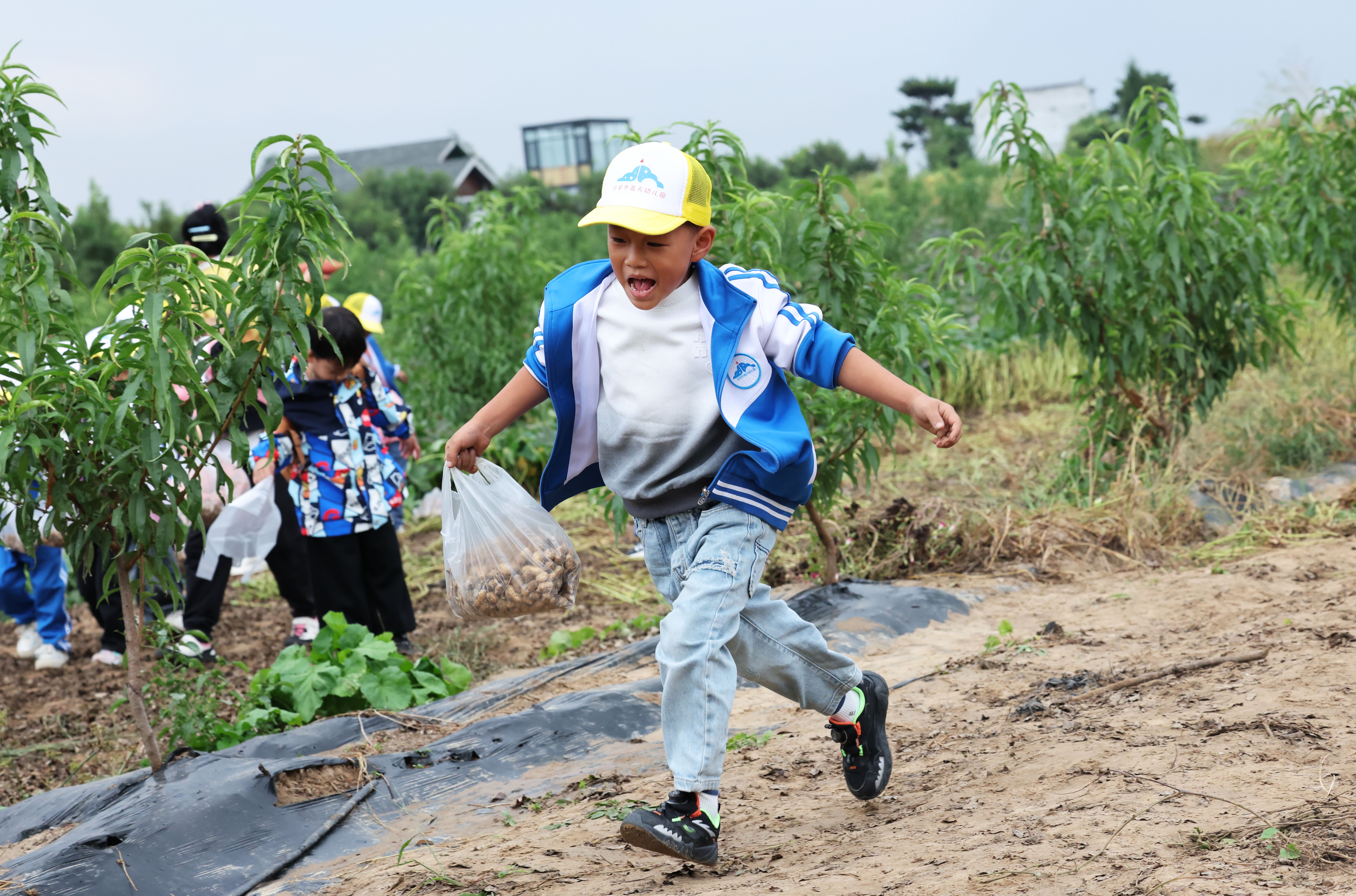 ↑9月23日,河北省迁安市组织150余名幼儿园儿童来到亚滦湾农业公园开展研学活动。这是小朋友在亚滦湾农业公园采摘花生。新华社记者 卢烨 摄