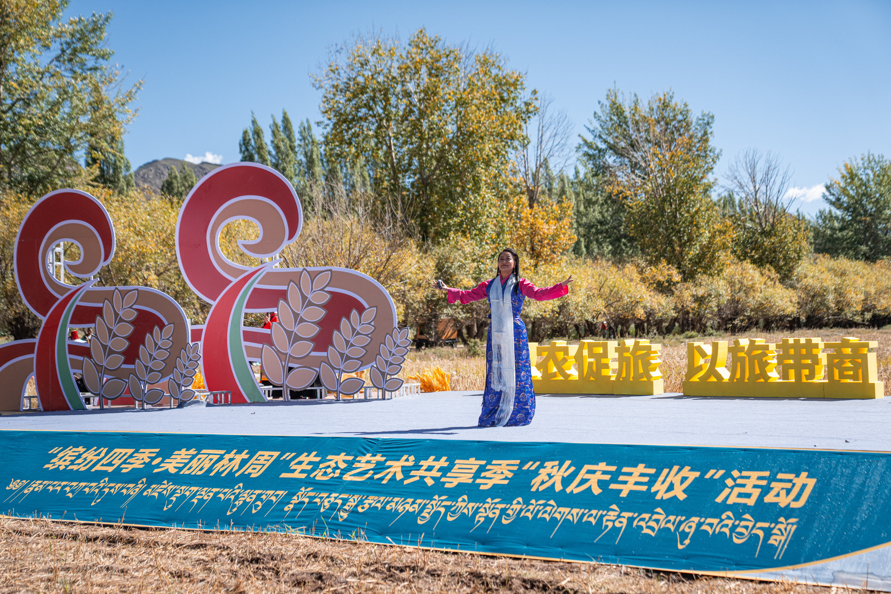 ↑9月23日在西藏拉萨市林周县强嘎乡典冲村拍摄的“秋庆丰收”活动现场。新华社记者 丁增尼达 摄