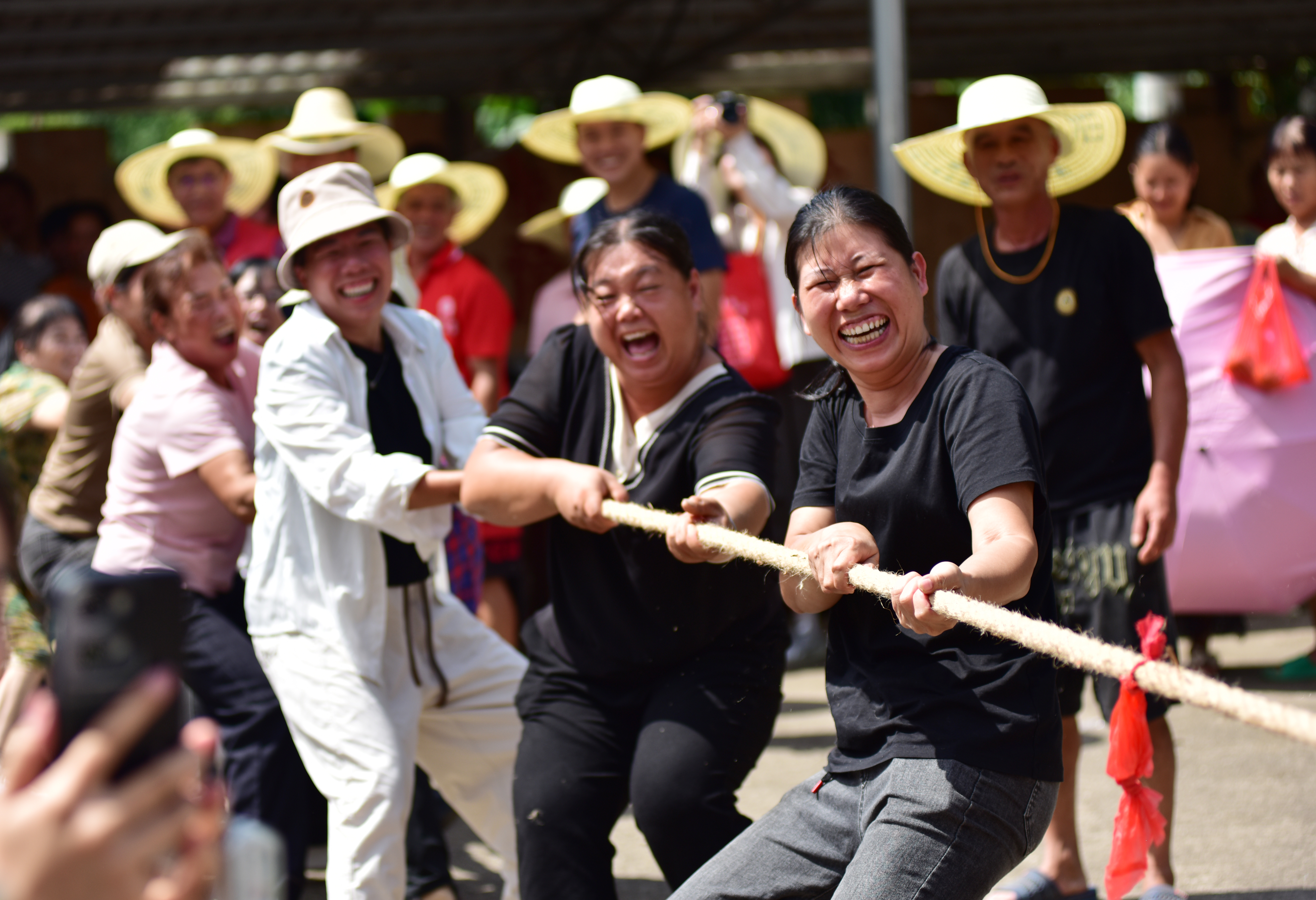 ↑9月23日,在广西贺州市八步区莲塘镇厚田村,农民群众在丰收节上拔河。新华社发(廖祖平摄)