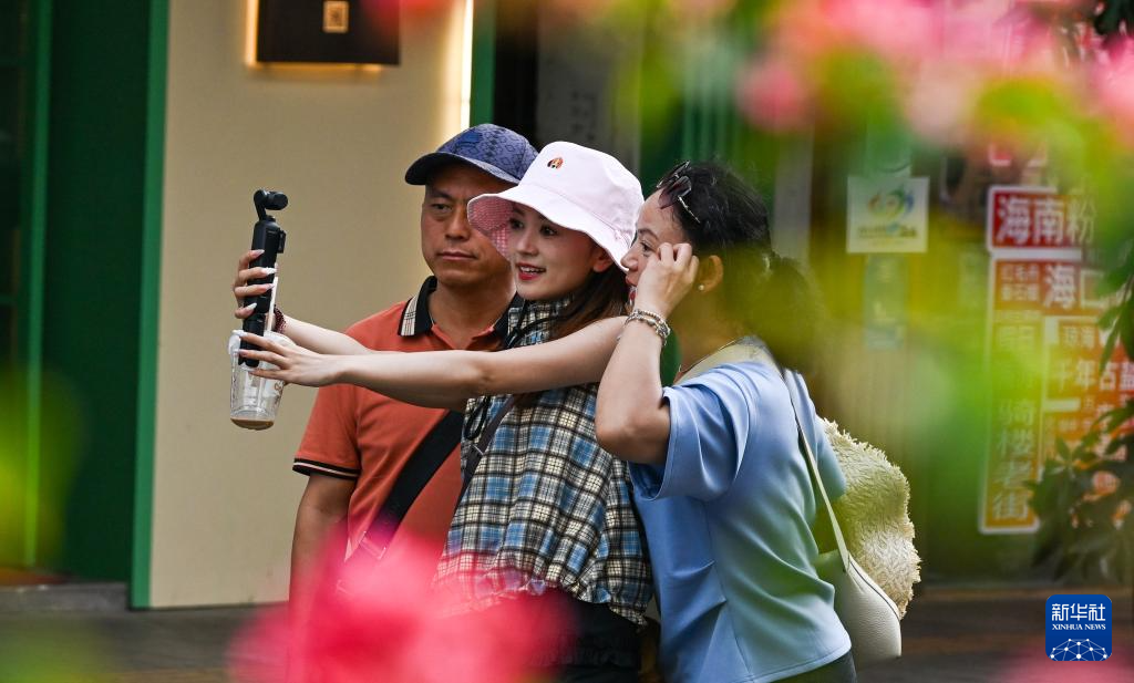 10月1日,游客在海口骑楼老街拍照留念。新华社记者 杨冠宇 摄