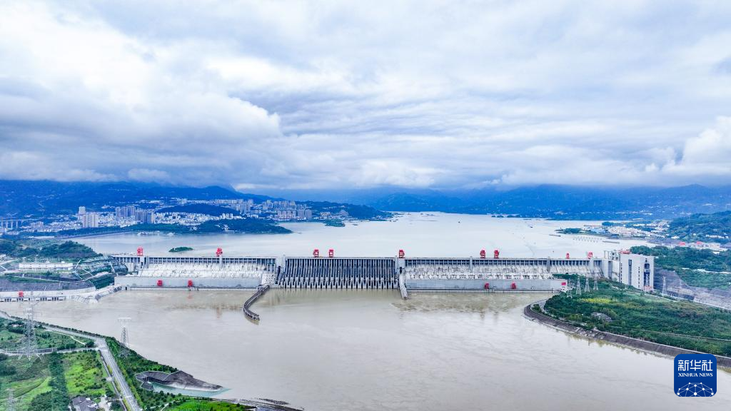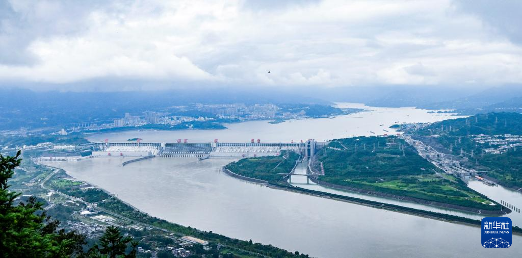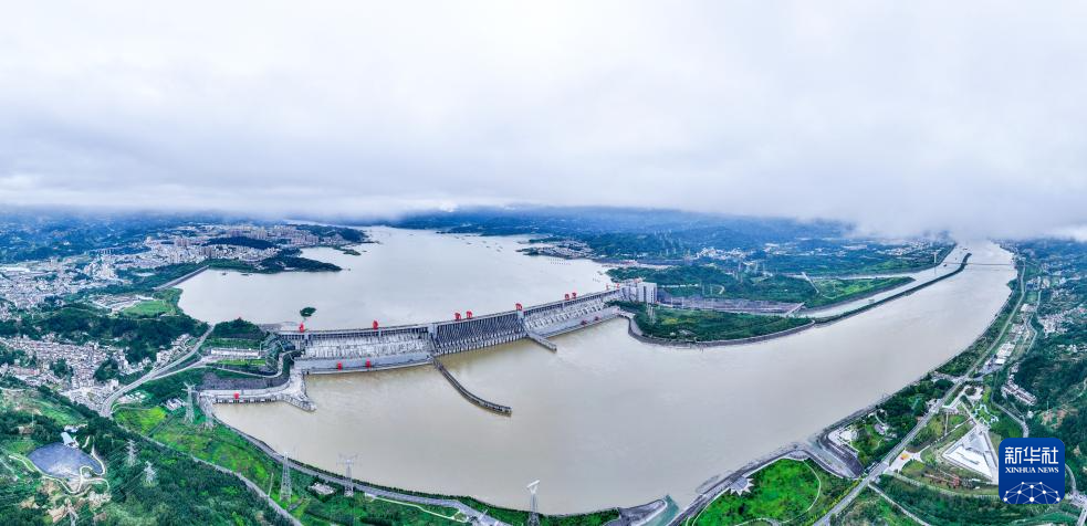 10月3日拍摄的三峡大坝(无人机全景照片)。新华社记者 陈晔华 摄