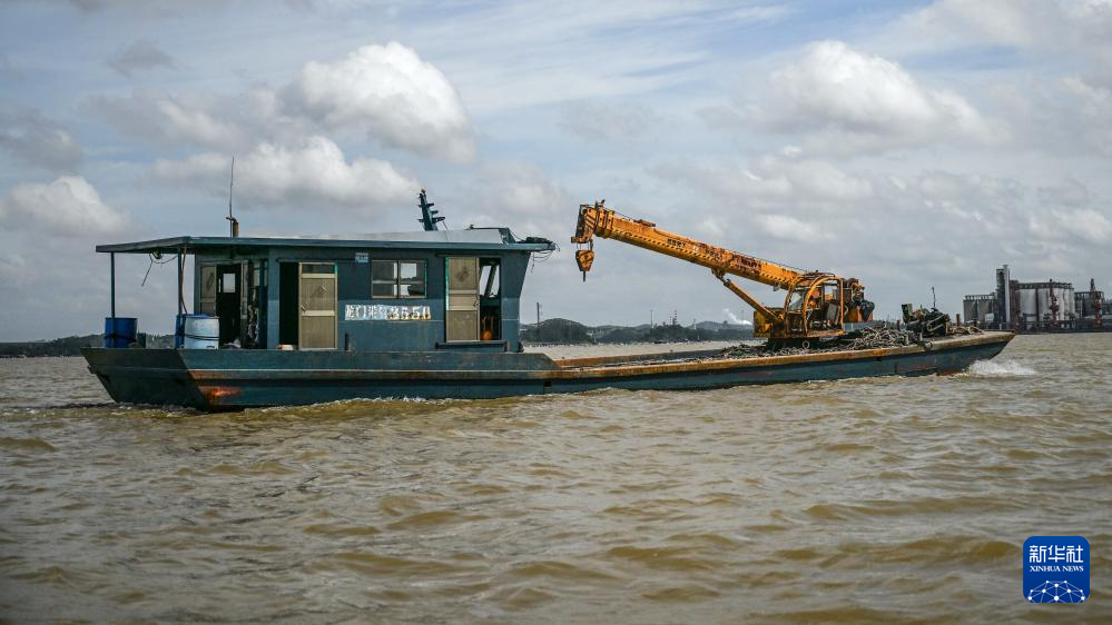10月7日,一艘修补船开往茅尾海修补受损蚝排。新华社记者 张爱林 摄