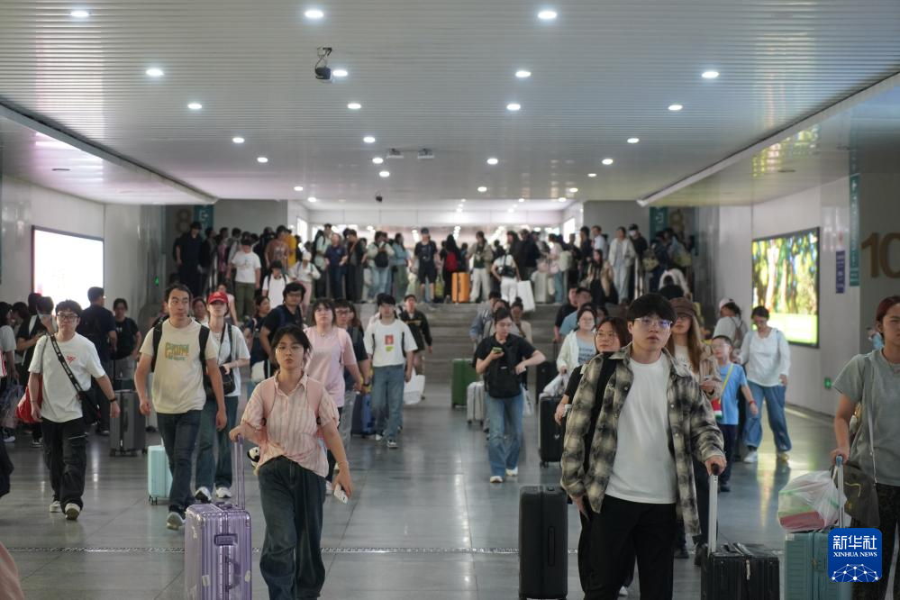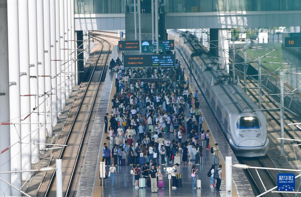 10月8日,旅客在南京火车站有序出站。新华社发(苏阳摄)