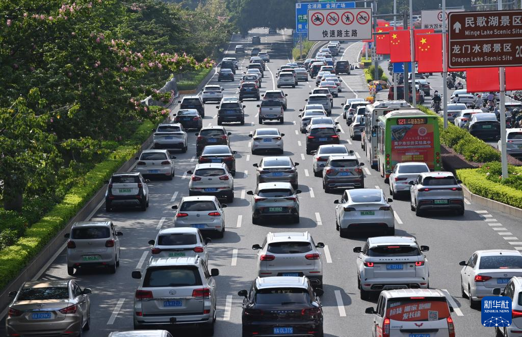 10月8日,进城车辆行驶在广西南宁市民族大道上。新华社记者 陆波岸 摄