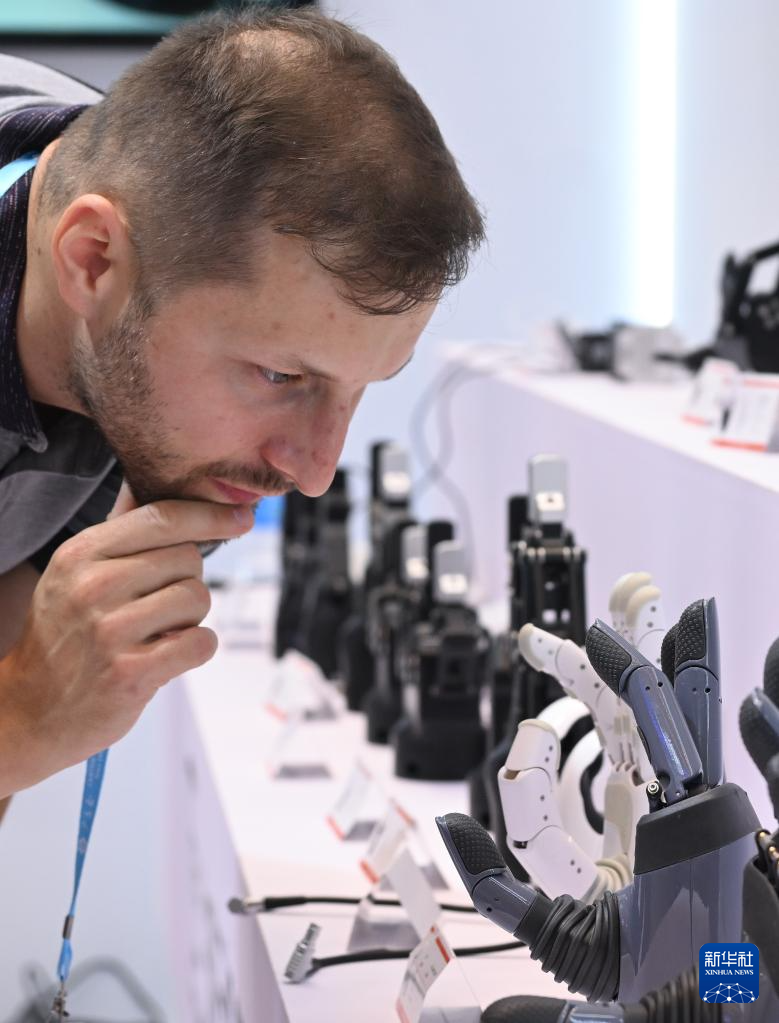 10月15日,境外采购商在第138届广交会服务机器人专区观看机器手产品。新华社记者 邓华 摄