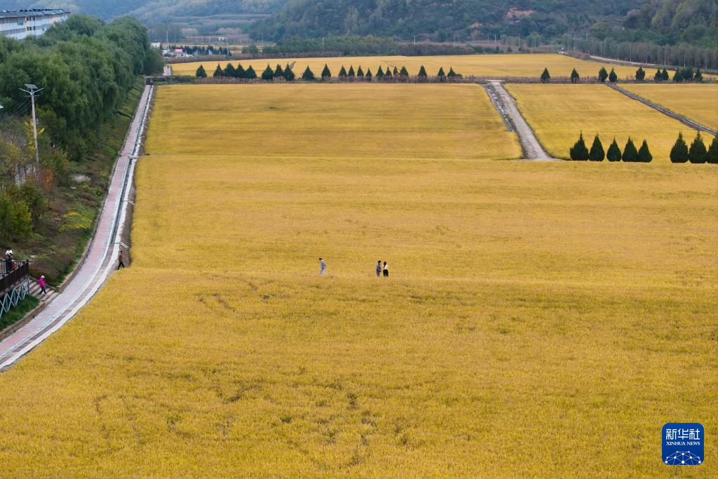 金秋十月,陕西延安南泥湾稻谷飘香,展现出“陕北好江南”的美丽图景,吸引游客参观打卡。
