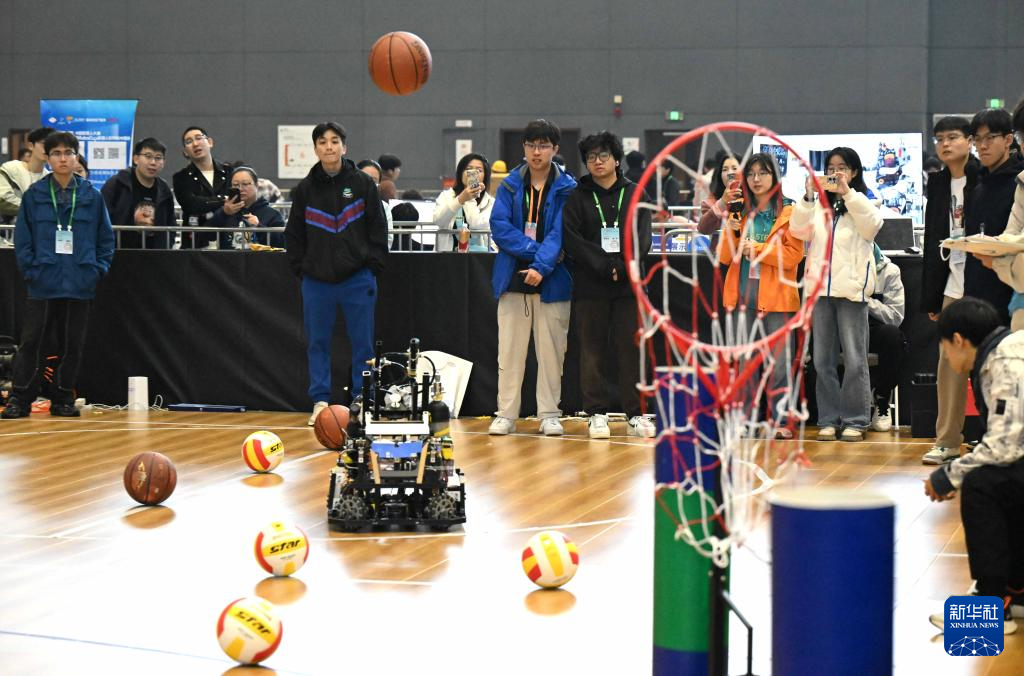 10月17日,篮球机器人在河北省石家庄国际会展中心进行比赛。新华社发(陈其保摄)
