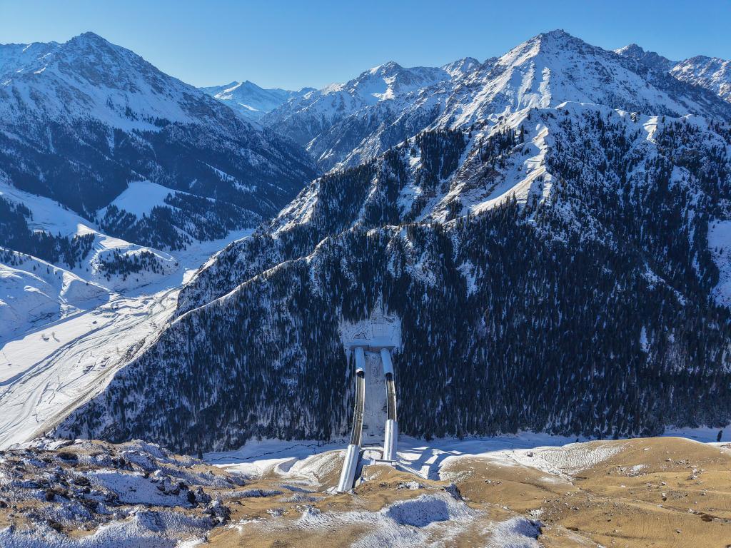 桥隧相连的乌尉高速公路穿越天山山脉(2025年12月23日摄)。新华社记者 胡虎虎 摄