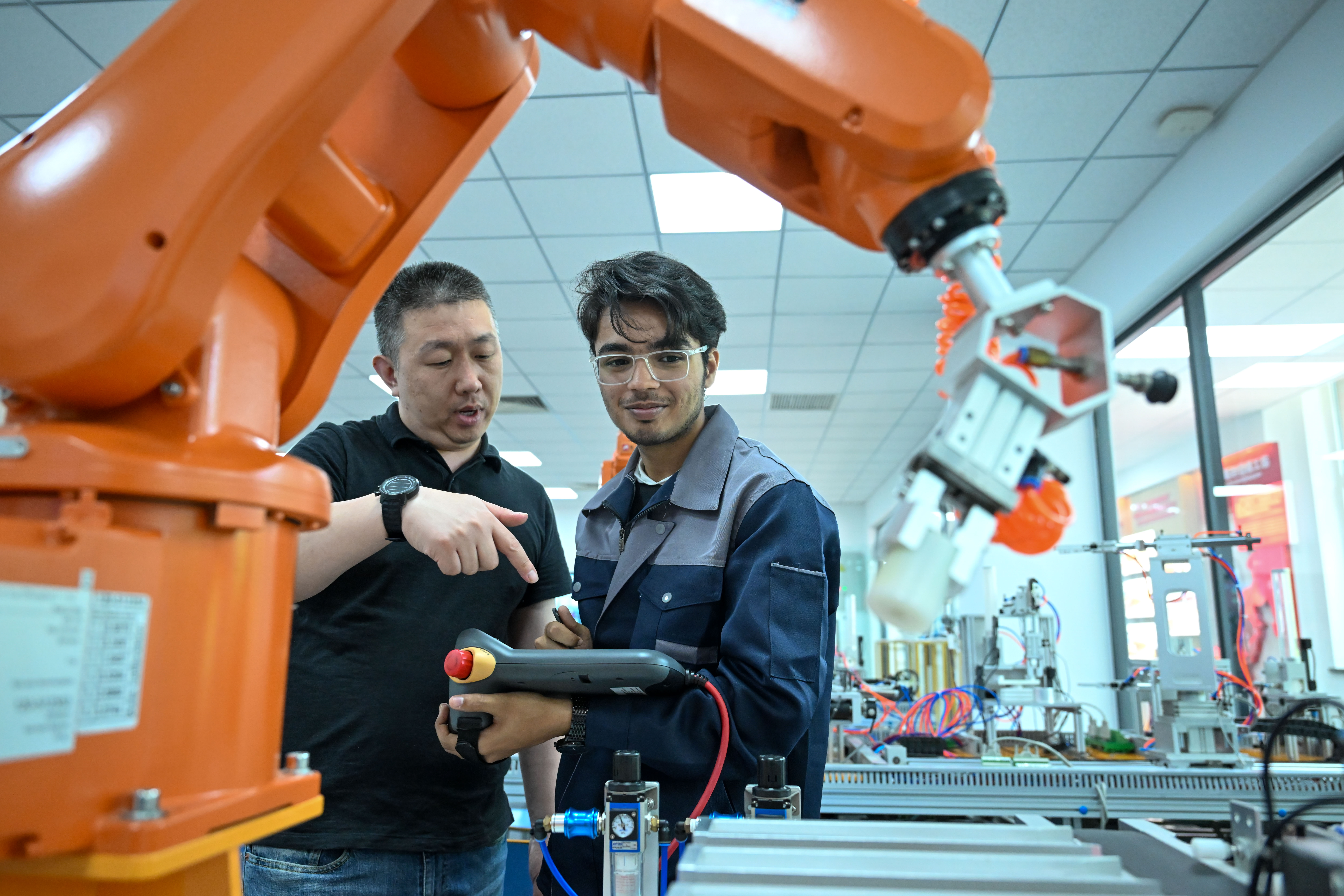 2018年7月,由天津与巴基斯坦合作共建的巴基斯坦鲁班工坊正式揭牌,迄今已累计培训1000余人次。2024年9月,搭乘鲁班工坊的机遇快车,成绩优异的穆杉获得奖学金,到天津求学。