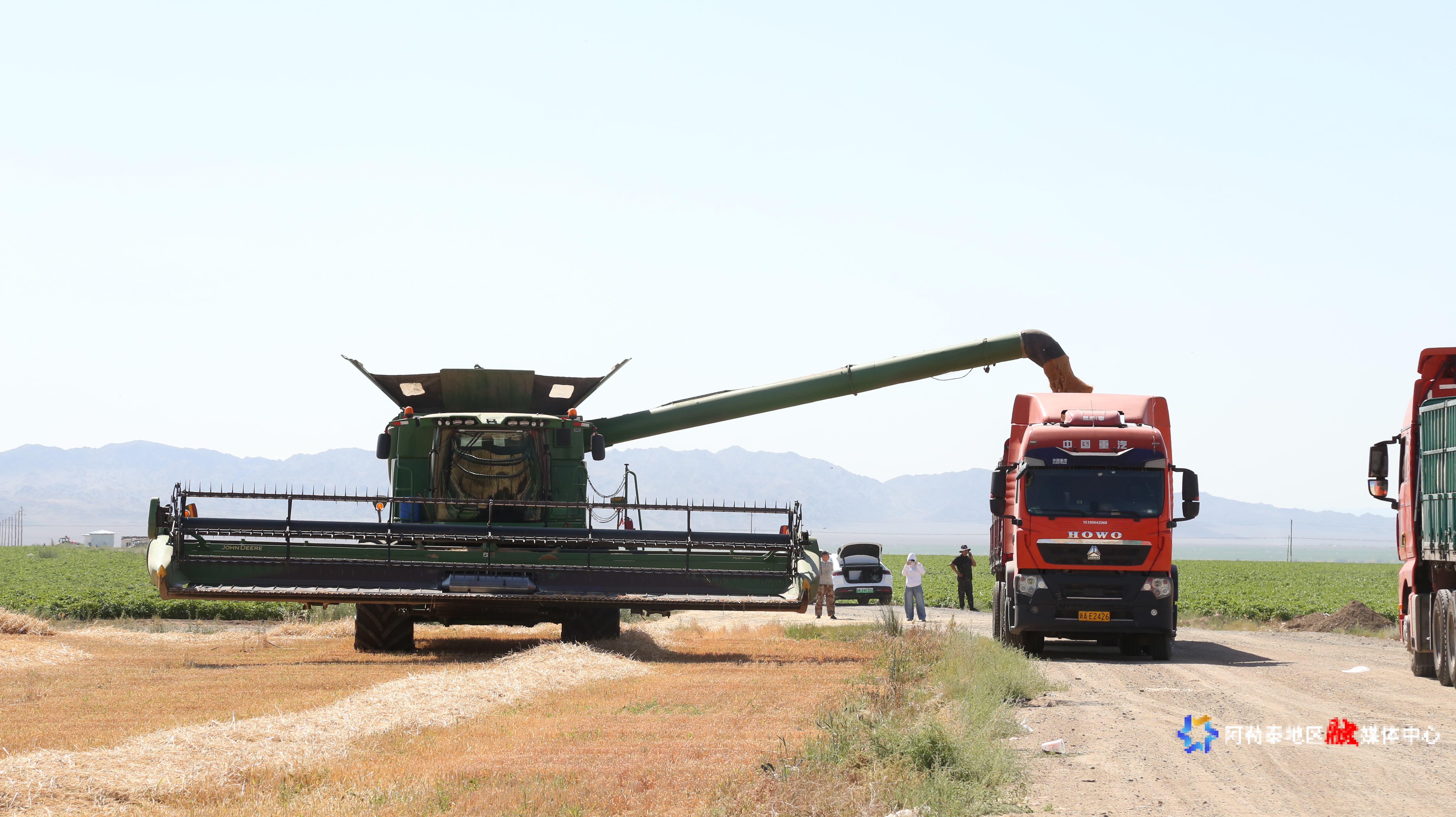 今年,阿格达拉镇广泛推广配方施肥等综合配套种植技术,有效促进了小麦单产提升。眼下,该镇正抢抓晴好天气,推进小麦抢收工作。