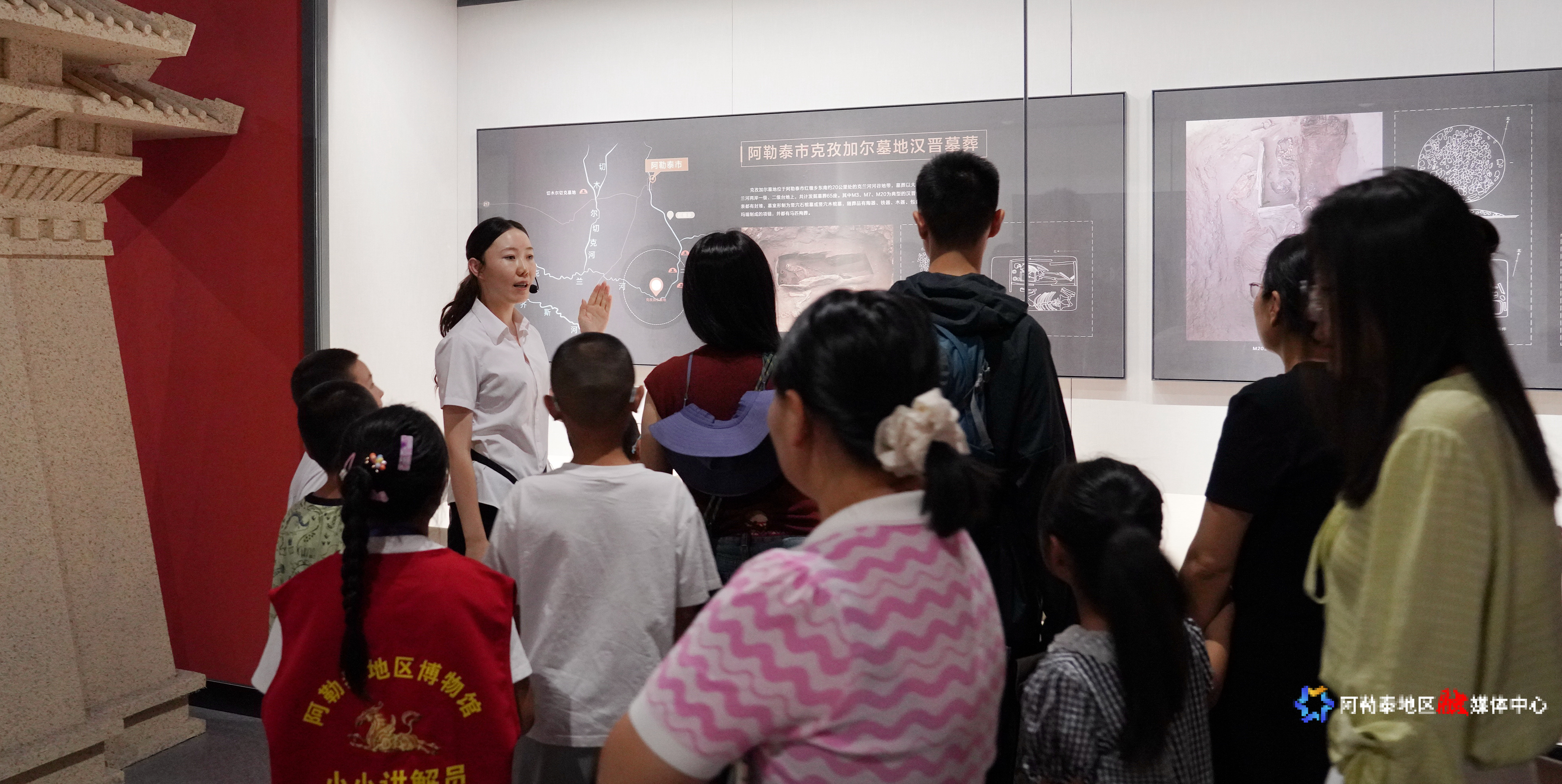活动为2025暑期“小小讲解员”发放聘书,由暑期培训班选拔出的5名“小小讲解员”率先登场,为小伙伴们讲解阿勒泰地区的历史文化,揭开文物背后的故事。