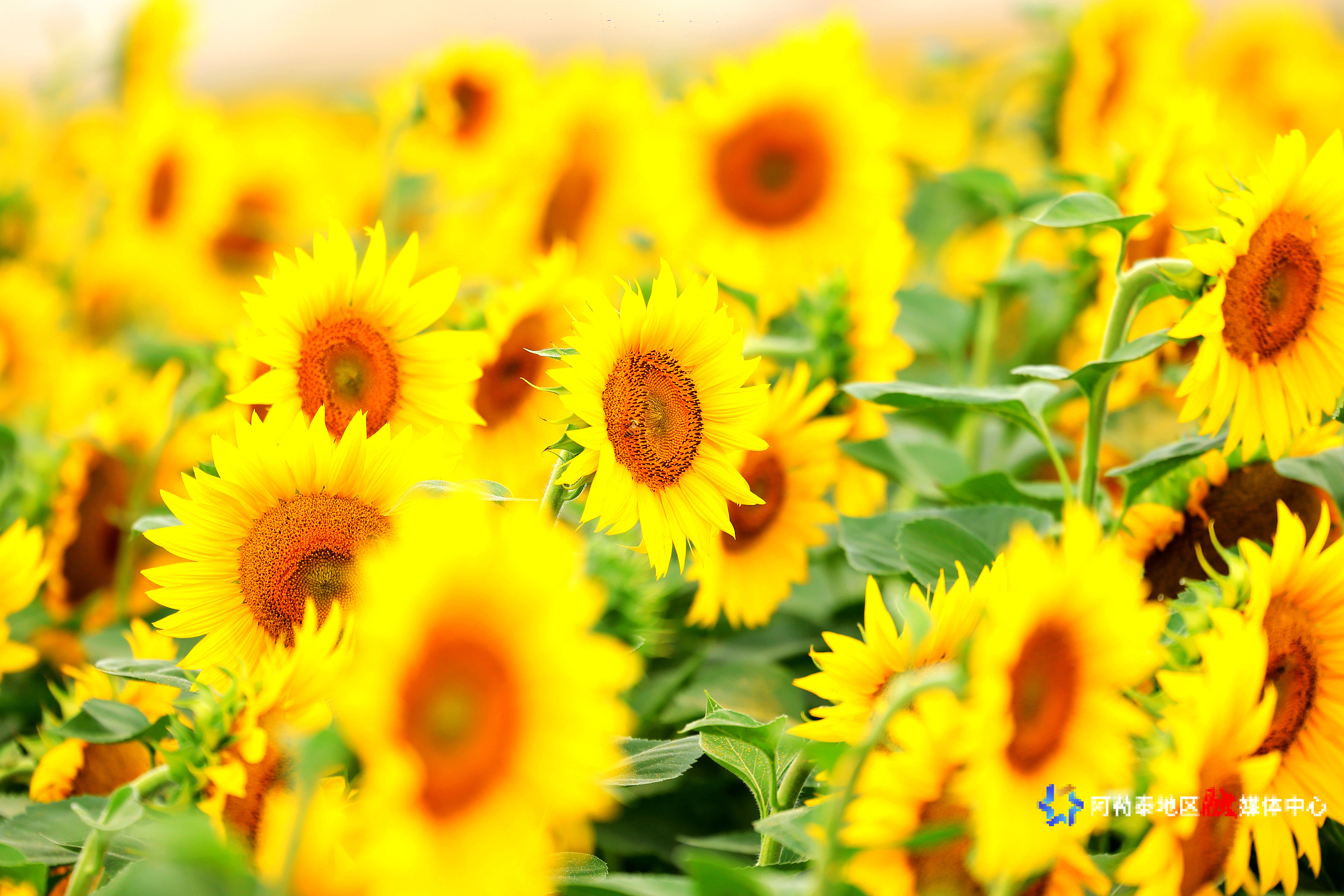 阿勒泰新闻网-阿勒泰地区融媒体中心(记者 阿尔达克·拜斯汗)八月骄阳下,福海县解特阿热勒镇的向日葵花海如金色绸缎般铺展。连片绽放的葵花擎着圆润花盘,随风摇曳出层层金浪,吸引着八方游客纷至沓来。花田间,游客或驻足赏花,或轻触花盘感受生机,孩童们则追逐着花丛中的蝴蝶,欢声笑语不断。