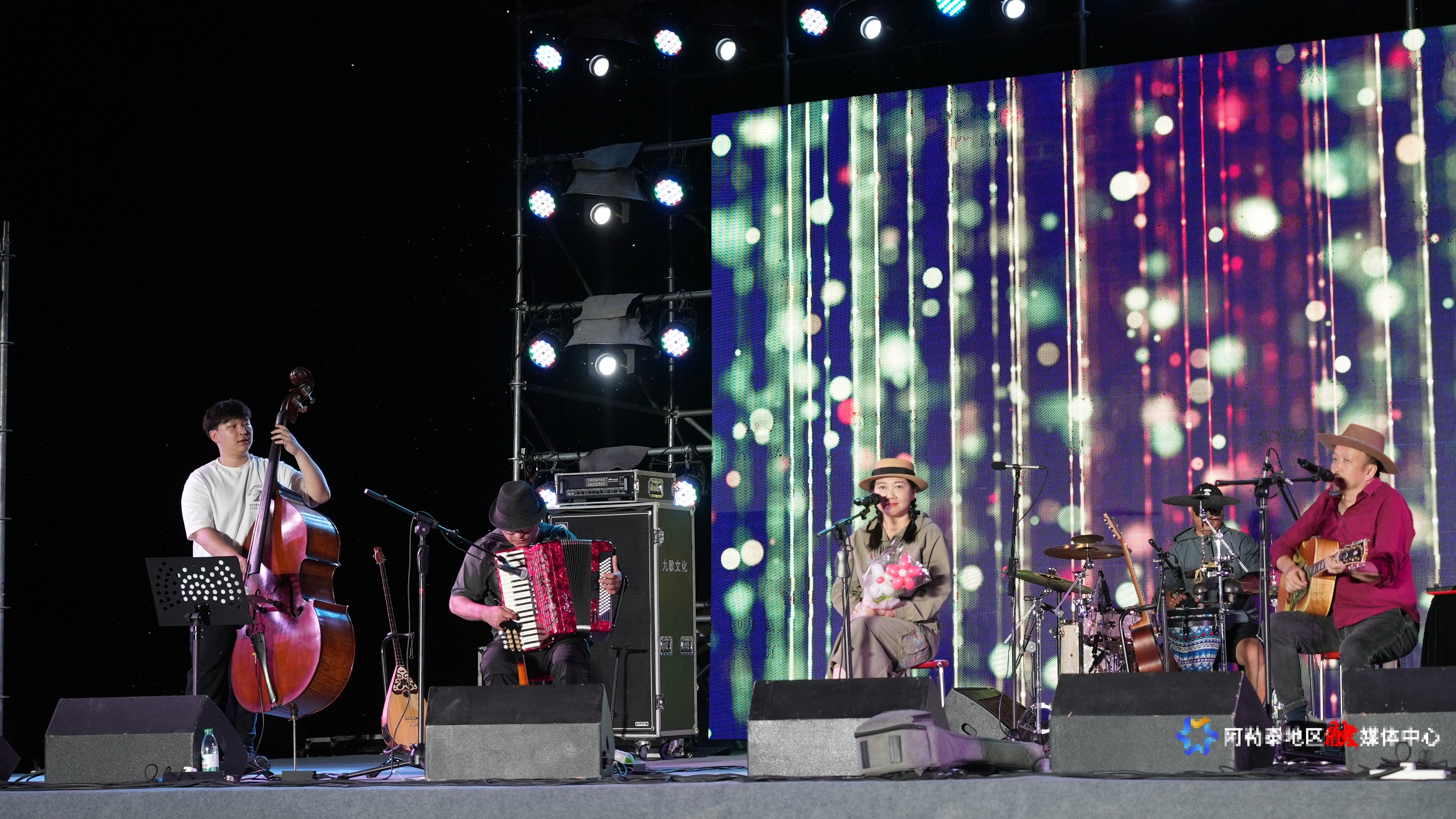 现场氛围同样令人难忘。观众们轻声跟唱,尽情享受音乐带来的快乐与感动。舞台后方,是连绵的银色沙丘,在灯光映照下显得更加壮观,现场观众无不沉醉于哈巴河县独特的自然风光与浓郁的民俗风情中。