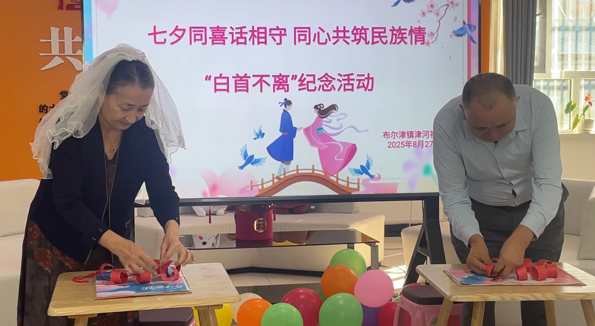 8月27日,在传统七夕佳节来临之际,为弘扬中华优秀传统文化、增进邻里情感联结,布尔津县津河社区举办“七夕同喜话相守 同心共筑民族情”——“白首不离”银发纪念活动,在传递浪漫温情的同时,尽显社区服务功能与基层治理效能,让辖区老人感受“家门口”的温暖。