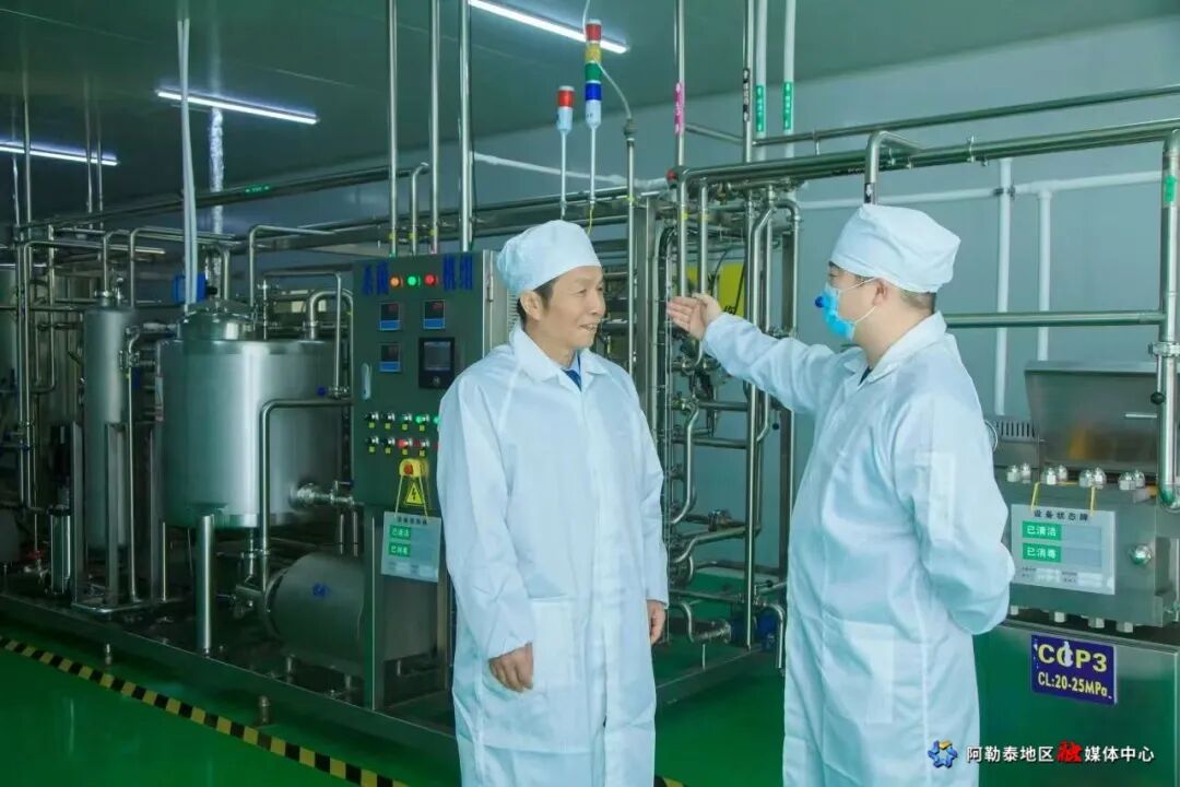 新疆旺源生物科技集团有限公司董事长陈钢粮在车间了解生产情况。