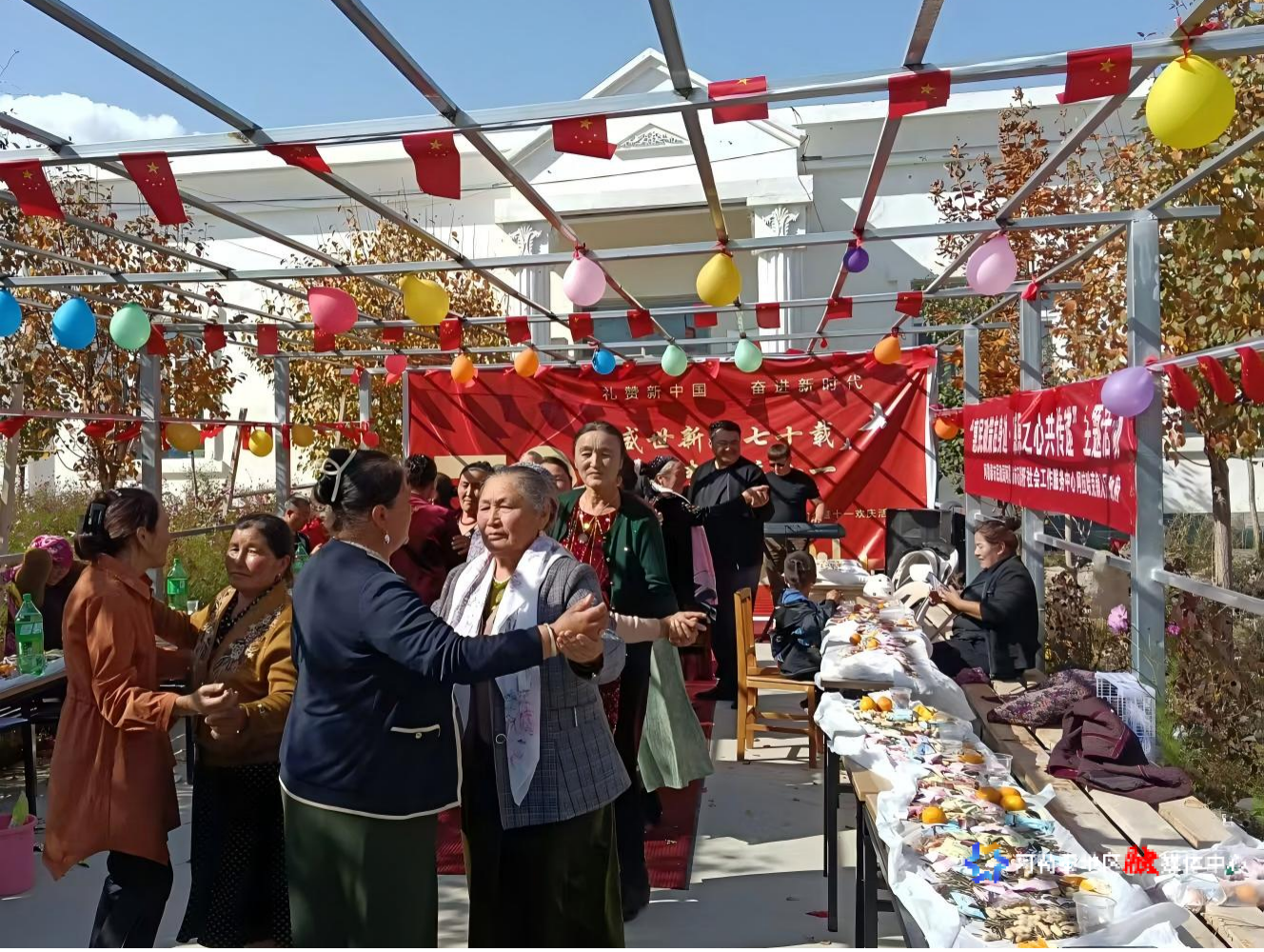阿勒泰新闻网-阿勒泰地区融媒体中心(记者 杨玮璇 通讯员 靳晓艳)金秋时节,麦浪翻滚,阿勒泰市阿拉哈克镇塔尔浪村洋溢着欢声笑语。9月28日,一场以“盛世新疆七十载 金秋丰收庆十一”为主题的文体活动在塔尔浪村精彩上演。此次活动由地区民政局、地区退役军人事务局、阿勒泰公路事业发展中心驻塔尔浪村工作队联合村“两委”班子共同策划组织。