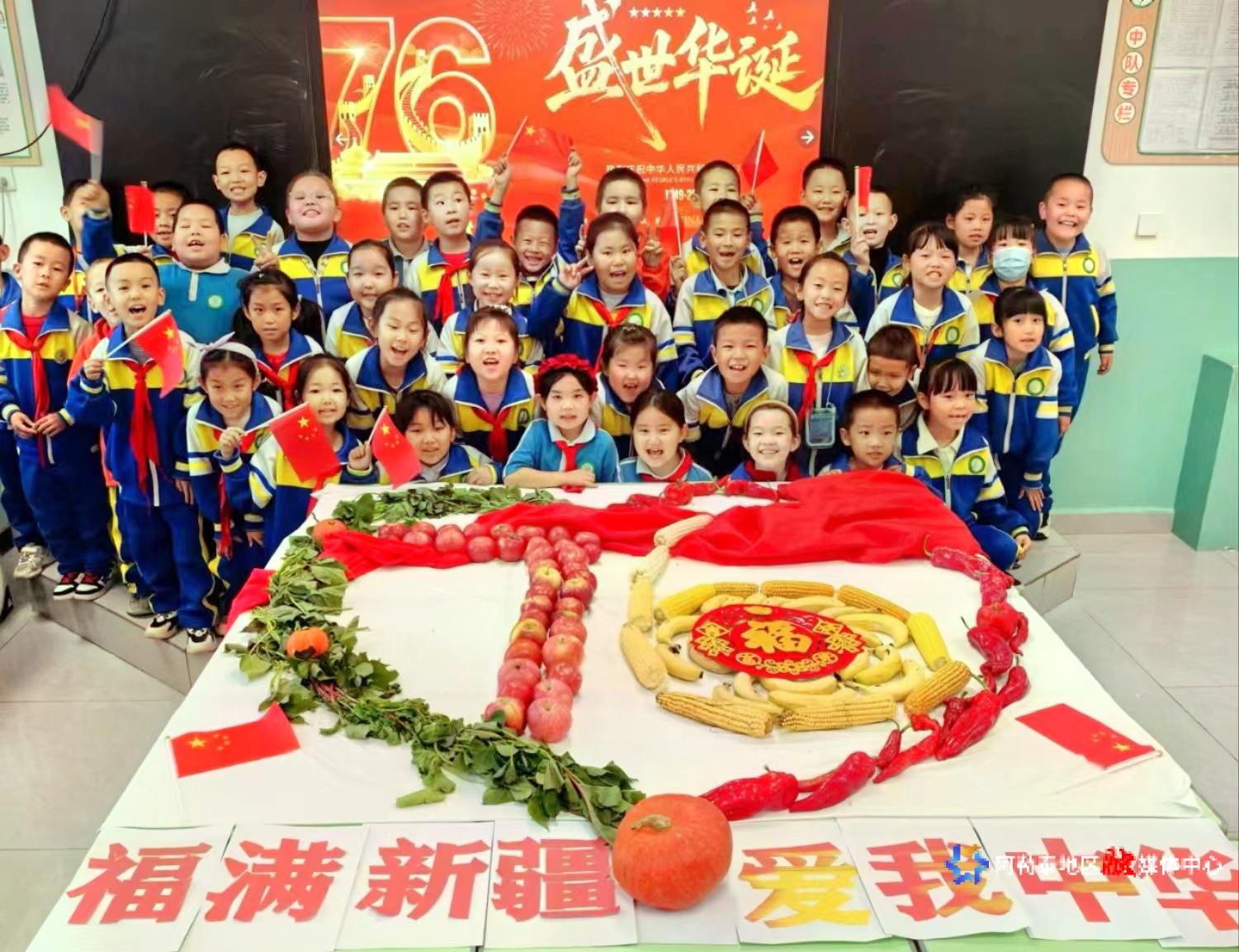 此次活动以新疆特色瓜果、农产品为核心创作素材,各班级紧扣“铸牢中华民族共同体意识”主线深耕创意,把对祖国的赤诚、对家乡的热爱融入每一件作品中。有的班级以金黄向日葵花盘为底,用鲜红彩椒拼出醒目数字,再以饱满番茄缀连出“中国”“新疆”字样,红与黄的鲜明碰撞间,尽显边疆少年的真挚情感;有的班级以颗粒饱满的玉米、敦实的南瓜等食材点缀作品,借丰收物产传递对家国未来的美好期许……
