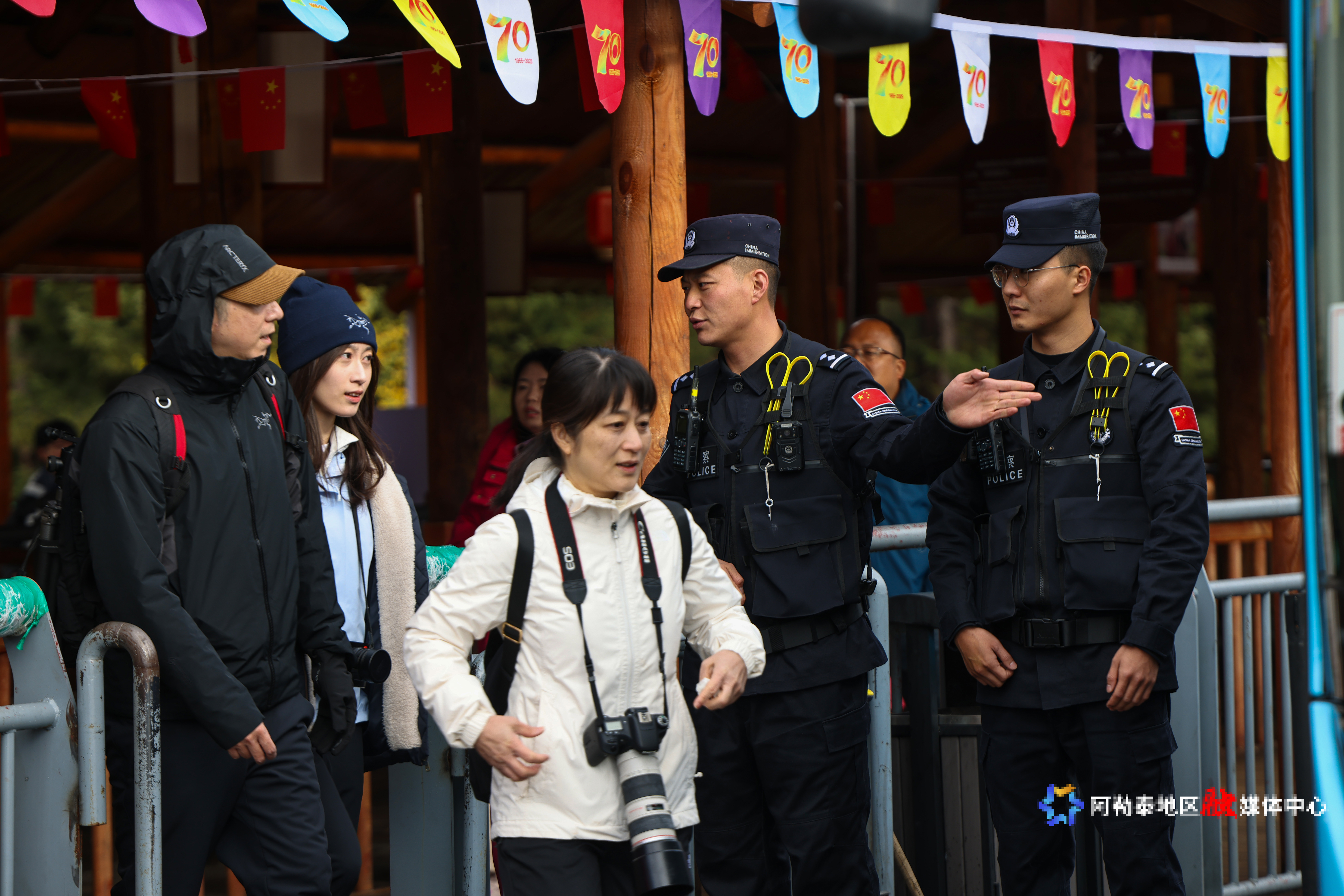 阿勒泰新闻网-阿勒泰地区融媒体中心(特约记者 王友波 通讯员 刘童瑶)10月2日,阿勒泰边境管理支队喀纳斯边境派出所民警在喀纳斯景区换乘中心、观景点等人员密集区域执勤巡逻,为游客营造舒适的旅游环境,让大家在欣赏美景的同时,感受到满满的安全感和幸福感。