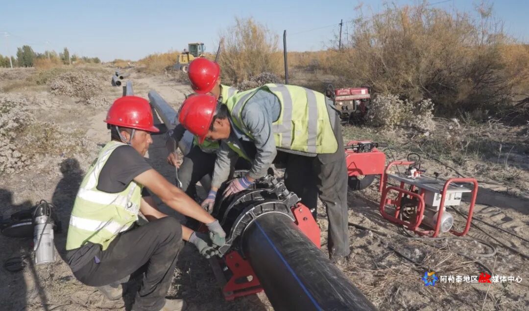 10月7日,福海县齐干吉迭乡赛克路村及安源社区水利项目提升改造工程(二标段)施工现场一派繁忙。工人们正进行管网精准对接,对开挖区域实施分层回填;大型机械往来穿梭,对场地进行细致压实平整。项目施工负责人贾喻淞说:“该工程主要建设19公里自来水管网设施,目前已完成60%的建设任务。国庆假期我们坚守岗位,全力抢抓工期,力争10月20日前完工。”