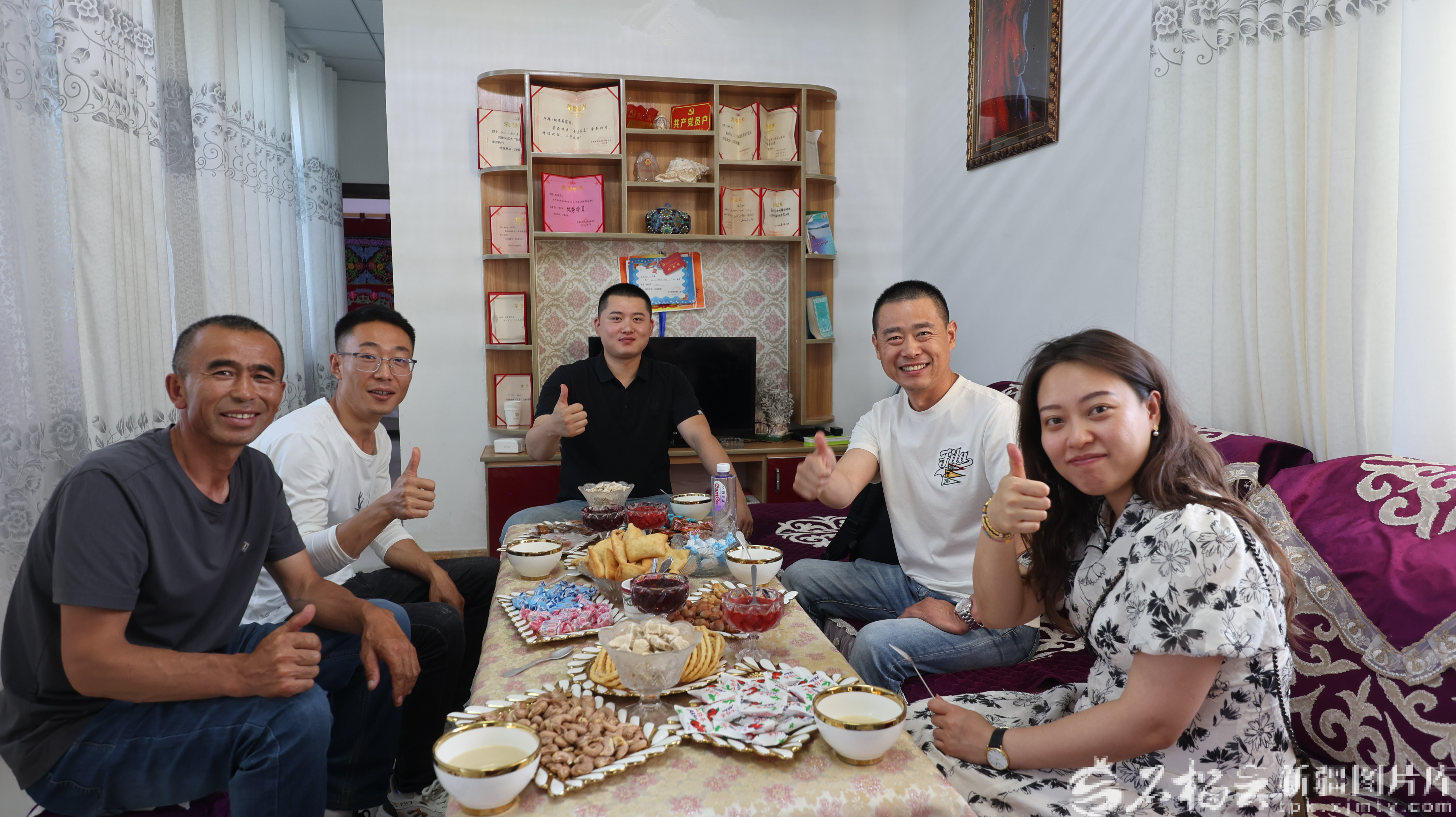 上海游客在布尔津县冲乎尔镇合孜勒哈英村“花间故事”民宿品尝当地特色美食。加尔恒·阿热帕 摄
