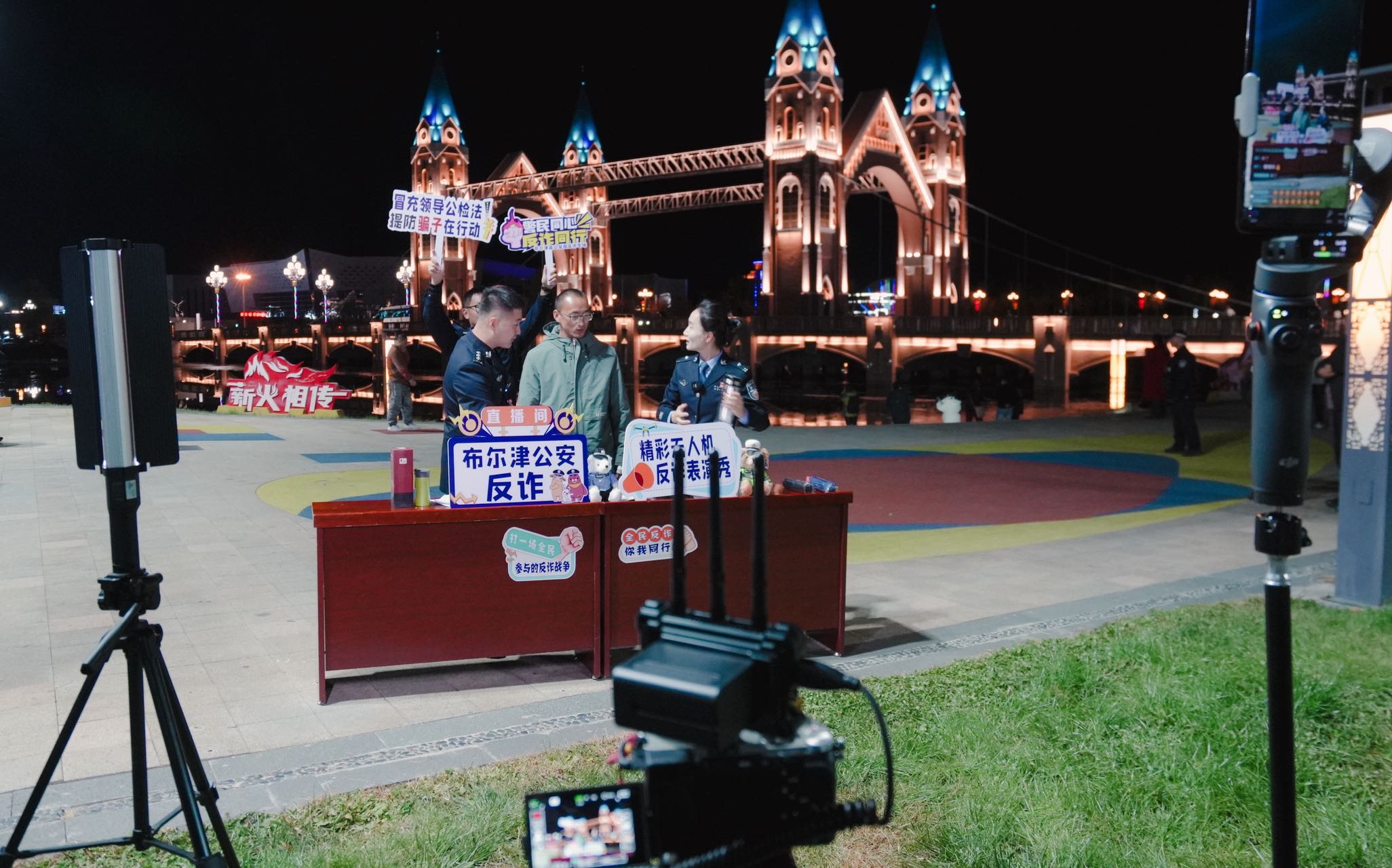 21时25分,随着指令下达,500架无人机整齐升空,在夜空中快速变换队形,依次组成“全民反诈在行动”“下载国家反诈APP”等巨型标语。明亮灯光与夜色形成强烈视觉对比,引得现场居民及游客纷纷驻足观赏,不少人举起手机记录这一精彩时刻。在趣味反诈知识问答环节,民警围绕直播讲解内容现场提问,观众踊跃举手抢答,答对者获得了精美礼品。