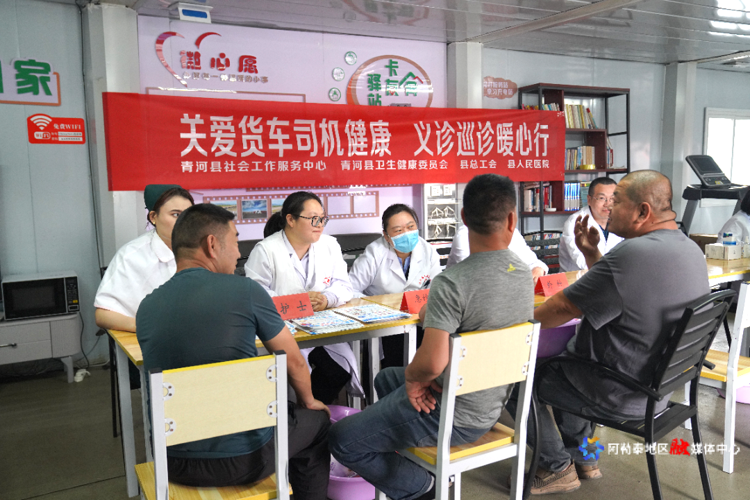 在青河县,3个建在加油站、物流园的“重卡营地”,已成为司机们的“家”,不仅能停车、充电,还能检修车辆、应急救护。更贴心的是,交通、司法等部门轮流坐班,司机遇到困难或法规疑问,当场就能咨询。每月还有“暖新义剪”“健康体检”等活动。青年司机小李通过营地组织的交友活动,认识了现在的爱人,他说:“跑在路上也能找到属于自己的幸福!”