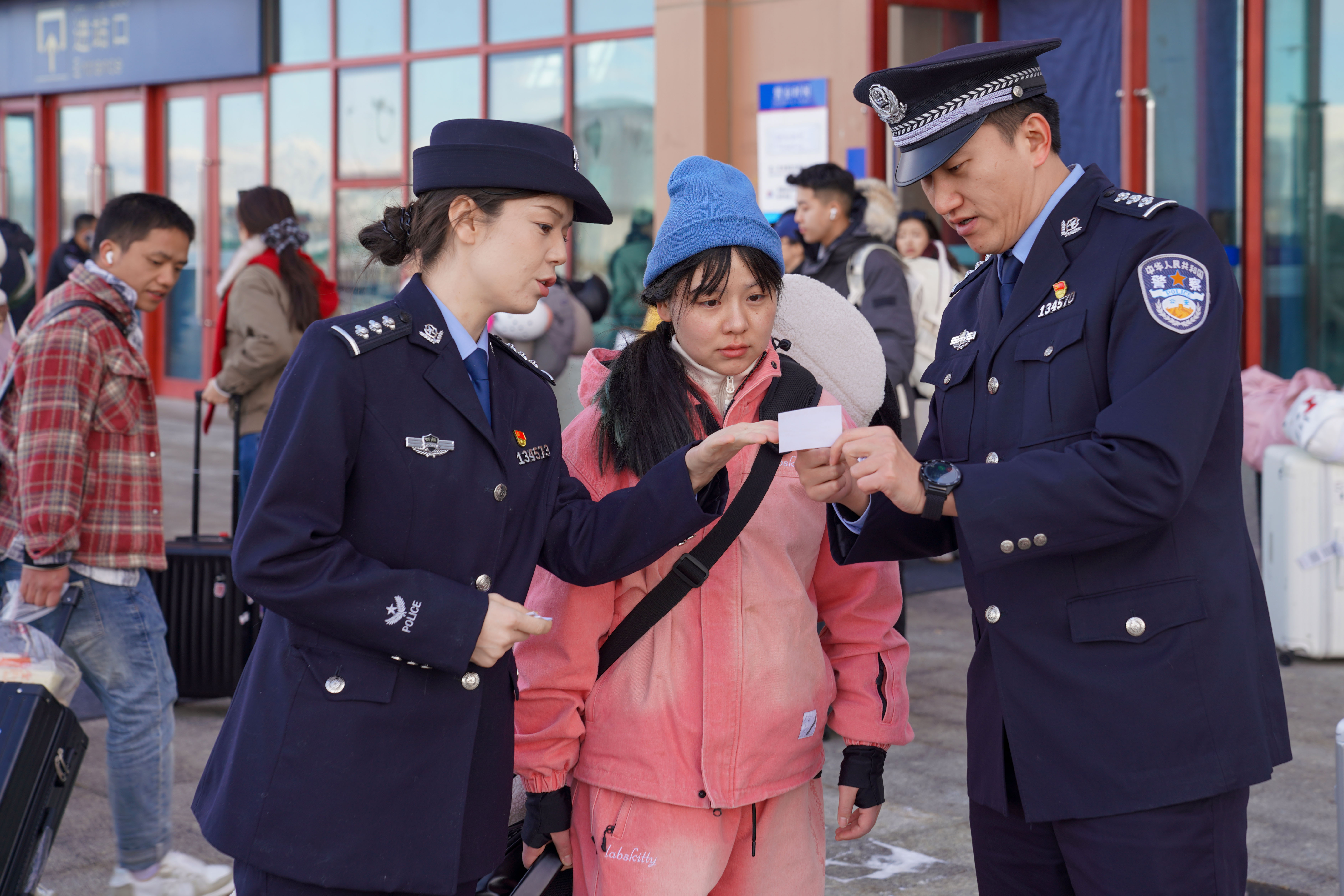 2026年1月1日,迎着新年第一缕阳光,首趟“中国雪都·我的阿勒泰”号列车从乌鲁木齐准点抵达阿勒泰站。乌鲁木齐铁路公安局奎屯公安处阿勒泰站派出所紧扣为民服务初心,营造安全、有序、温馨的旅途环境,提前协调开通地方直达雪场专车、增设雪具临时停放点、打造列车旅游打卡点,为旅客粘贴安全提示卡警民联系贴,设立冰雪旅游便民服务岗,全方位保障旅客平安有序出行。