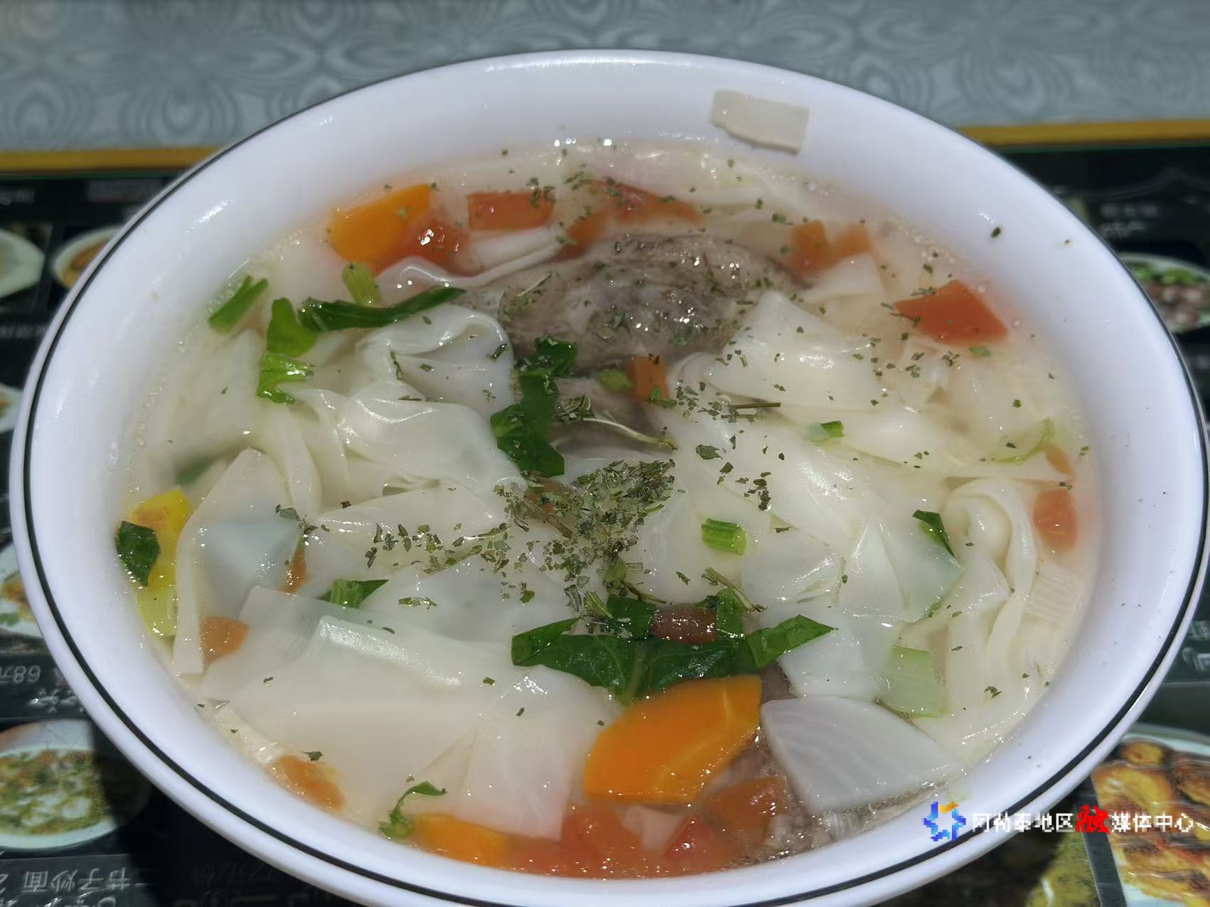 “小寒进补,来年打虎”——这句老话在阿勒泰人的餐桌上得到生动印证。因地处北疆,冬日漫长,本地食补更偏爱温热滋补的本土风味。清晨,家家户户精心熬煮的奶茶香气四溢,搭配刚出锅的油香、包尔萨克,成为唤醒身体的暖心美味;午餐时分,清炖羊肉的鲜香从家家户户厨房飘出,羊肉搭配恰玛古、胡萝卜文火慢炖,肉烂汤浓,既能温中散寒,又可补充冬日能量消耗;晚餐的餐桌上,一碗红枣枸杞小米粥,或是一盘热气腾腾的手抓肉,都是温润滋补的佳选。