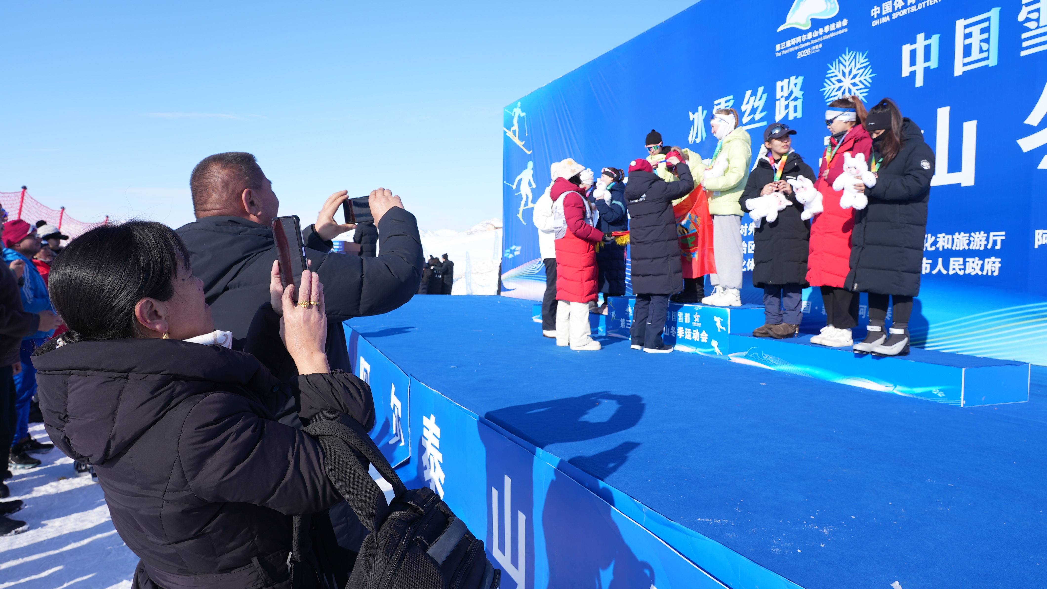颁奖仪式开始前,广播里响起了《生日快乐歌》的旋律。来参加比赛的各国冰雪健儿们,用各自的语言为19岁的波撇那依·恰肯送上美好祝福。一张张合影定格赛事荣耀,更见证着冰雪友谊。