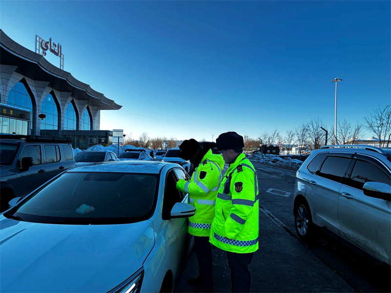 当天,在阿勒泰雪都机场外,阿勒泰市交通运输局工作人员还做好出租车、网约车、客运车辆疏导管理工作,规范运营秩序,保障出站旅客快速分流、便捷乘车。