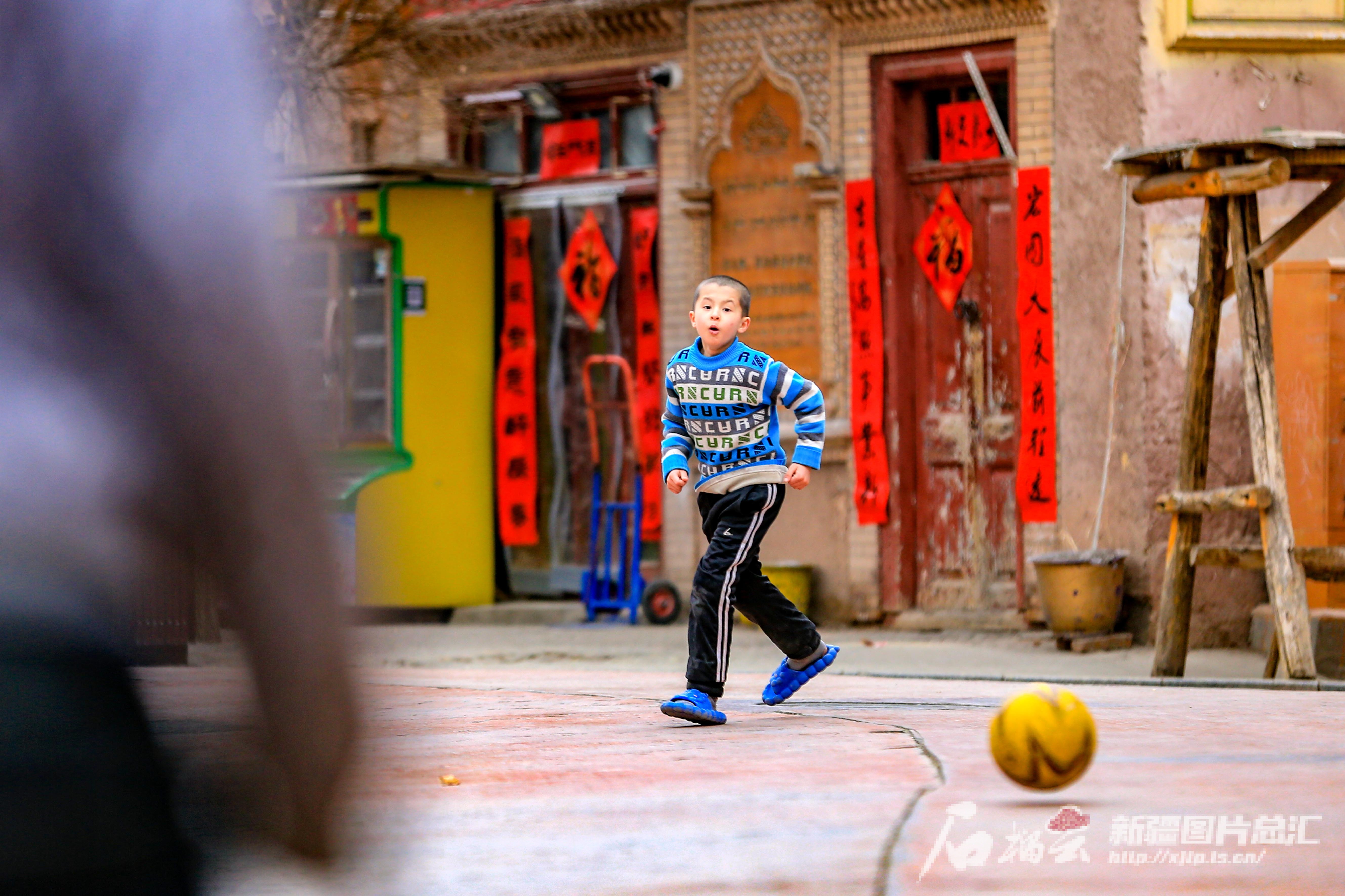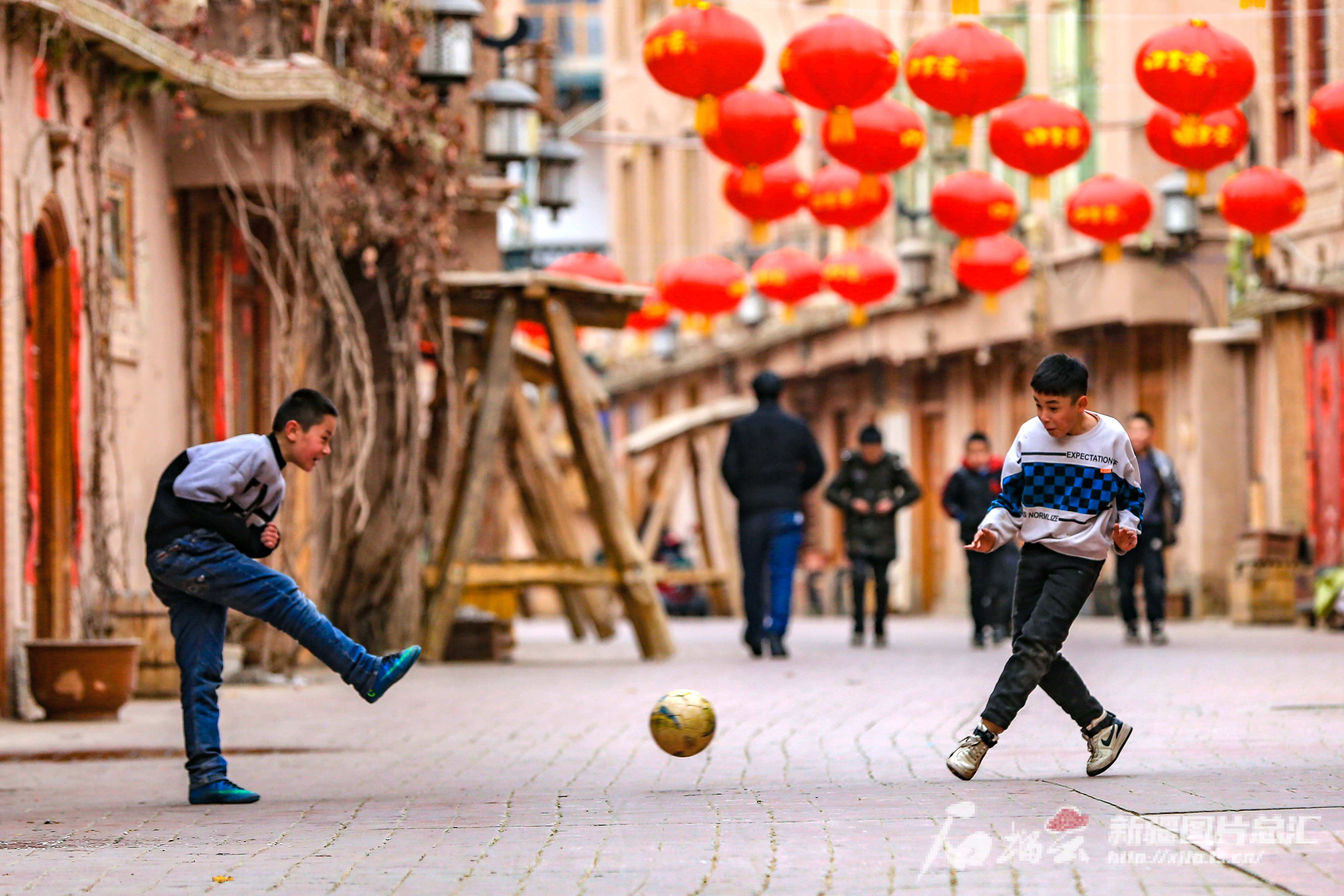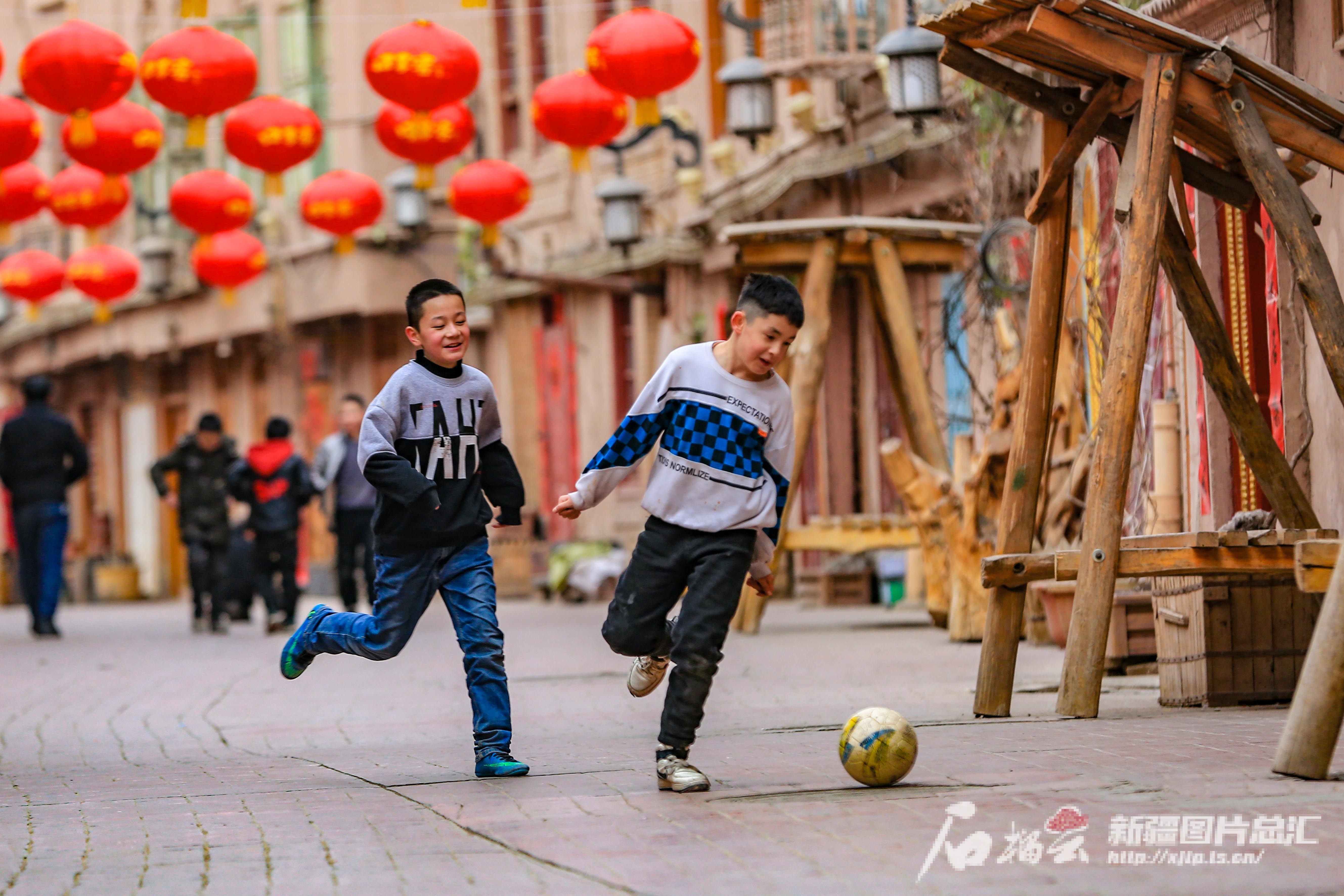 石榴云/新疆日报讯(记者 蔡增乐摄影报道)过年是孩子们的欢乐节日,在总台2024年春晚分会场之一的新疆喀什古城里,有一群喜欢踢球的小朋友,他们激情奔放活力四射。