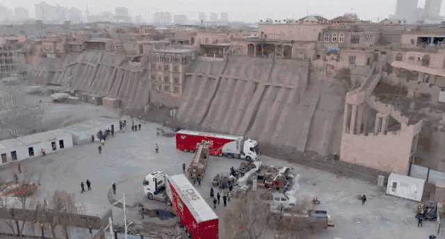 总台春晚新疆喀什分会场舞台搭建现场。石榴云/新疆日报记者 刘萌萌摄