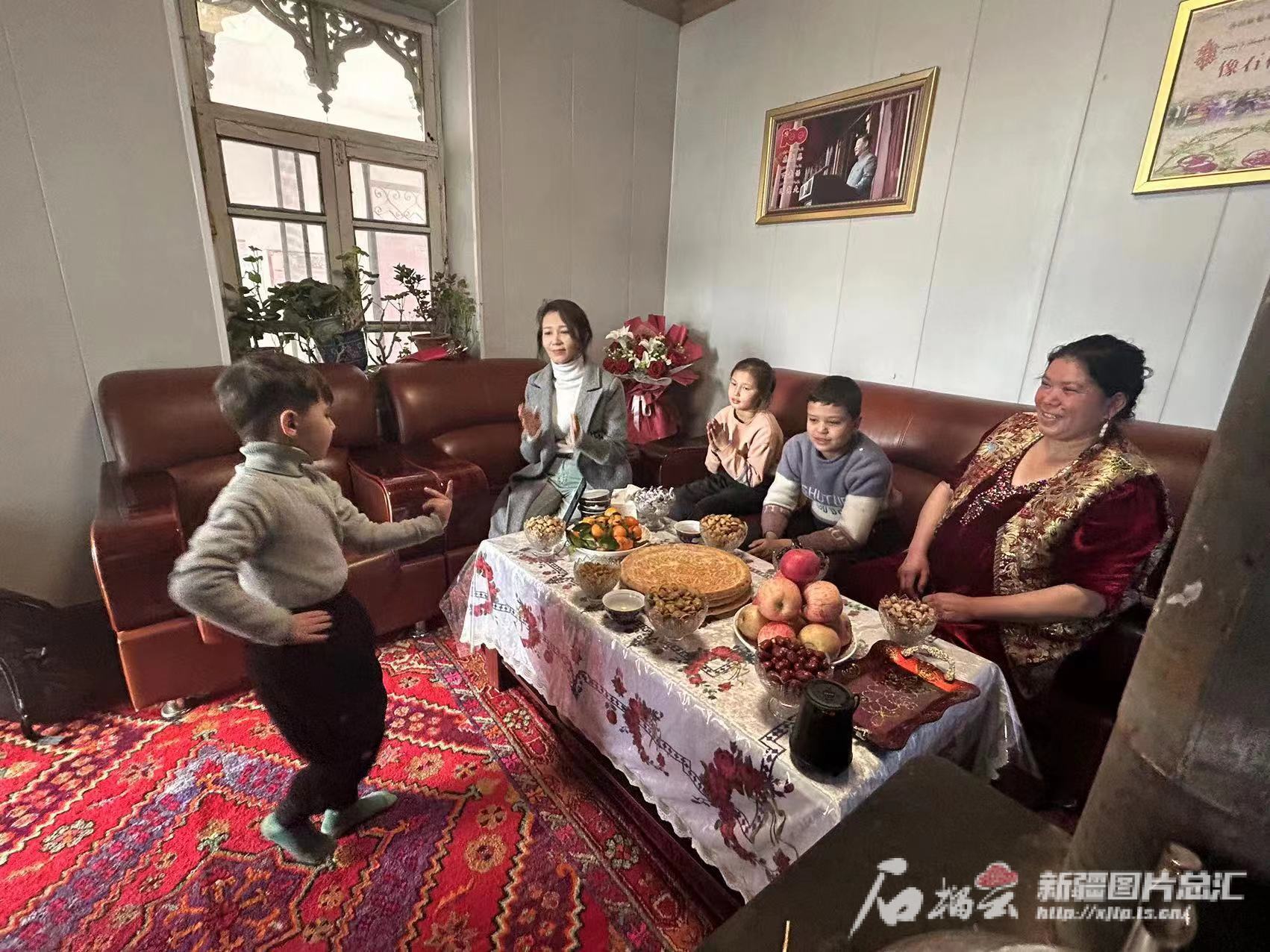 考赛尔给家人跳舞。石榴云/新疆日报记者 阿比拜摄