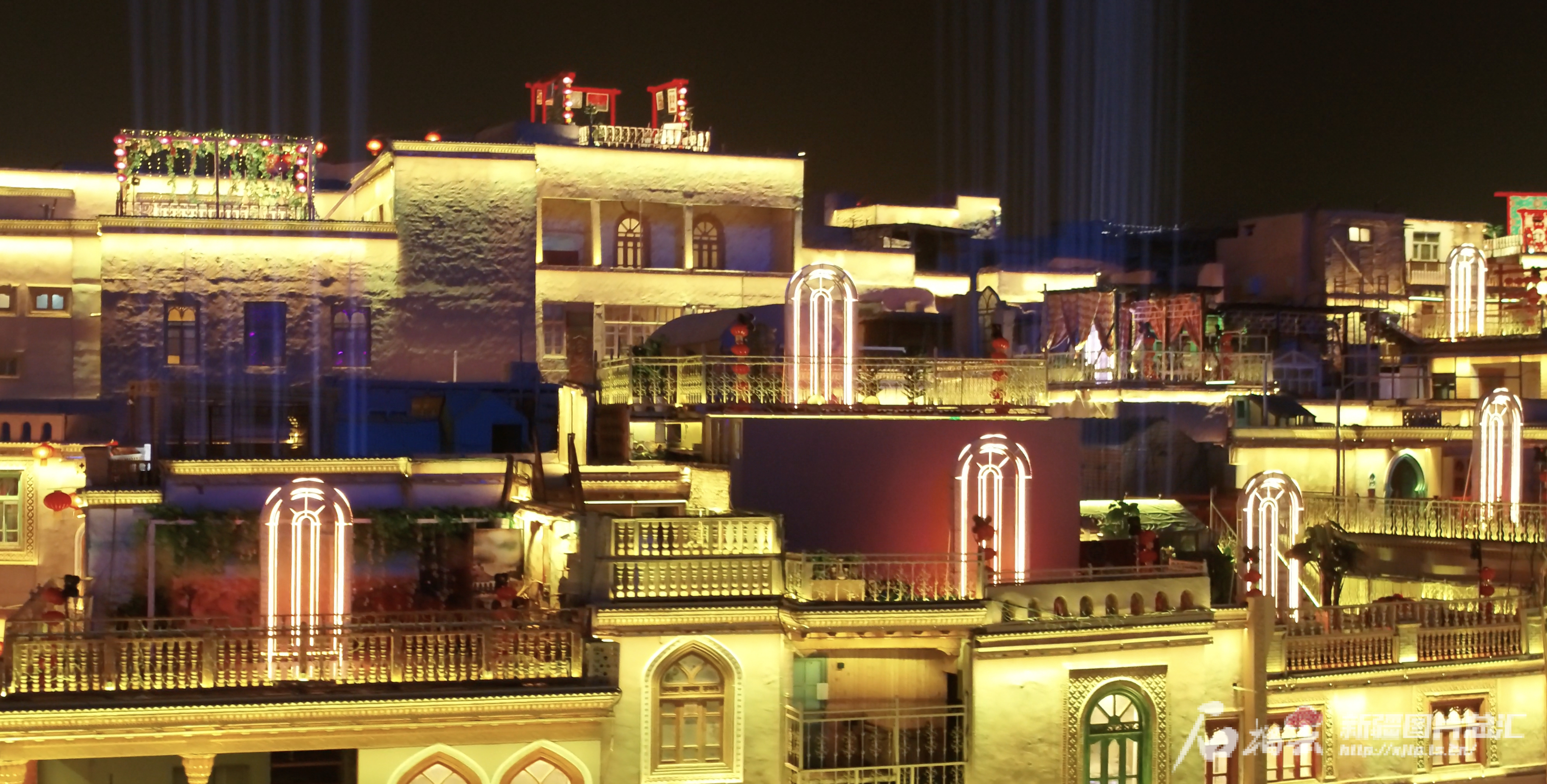 夜晚,亮灯后的屋顶舞台流光溢彩。阿布力米提·艾尼瓦摄