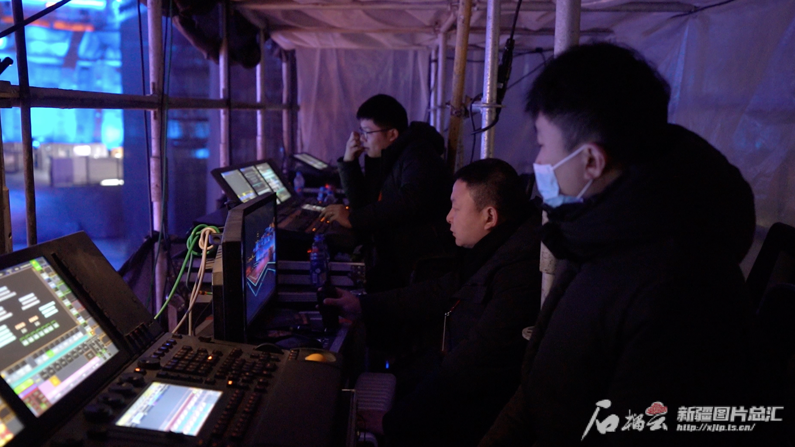 灯光师们正在调试灯光。依拉木江·艾山摄