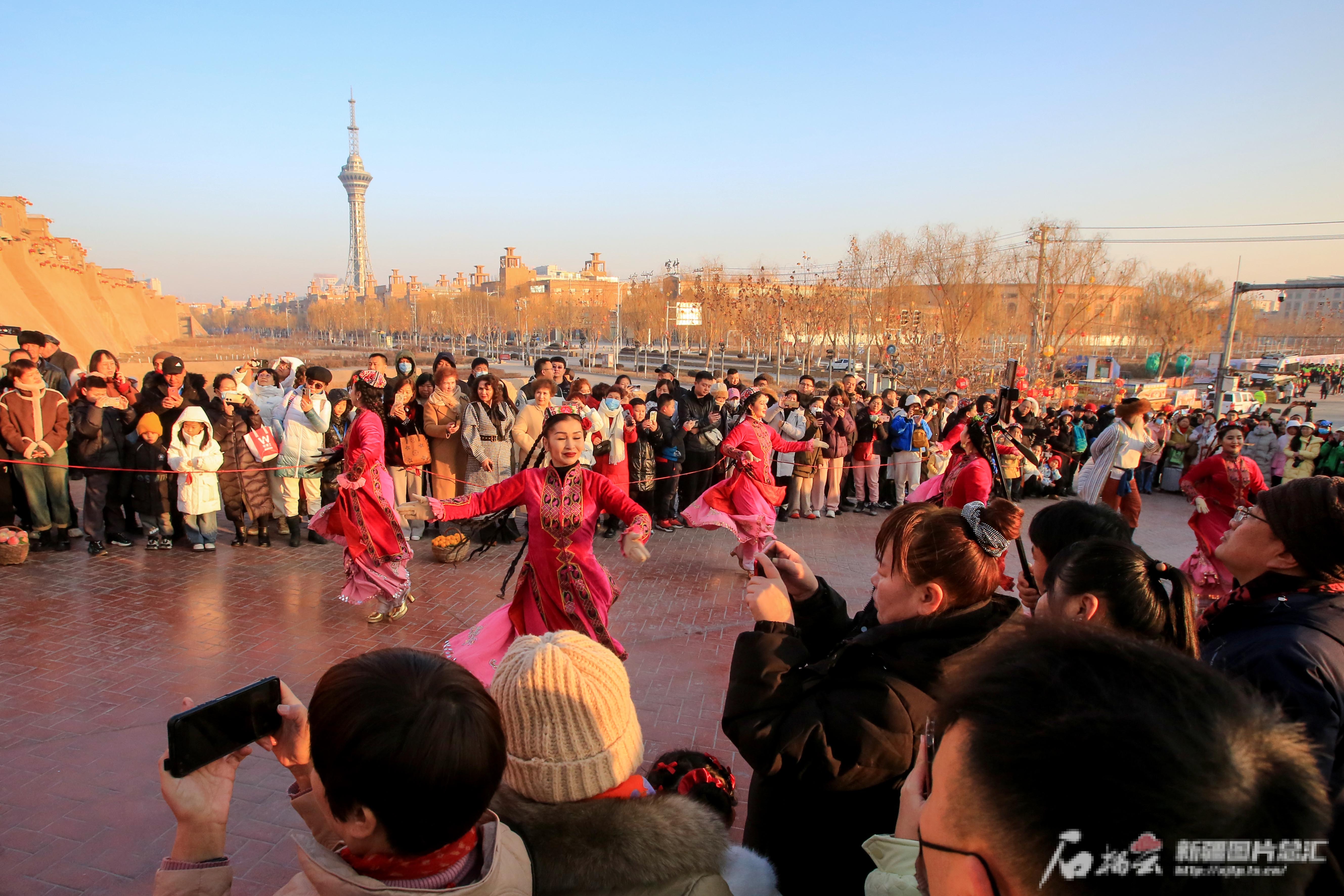 天山网-新疆日报讯(记者蔡增乐摄影报道)“请问何方贵客?北京、重庆、福州……”正月初一一大早,喀什古城景区入城仪式上古城的迎客官声音洪亮,回答声此起彼伏。“我们2月4日就来了,专门来喀什过年,找点不一样的感觉。”来自广东省东莞市的游客陈卢英说。