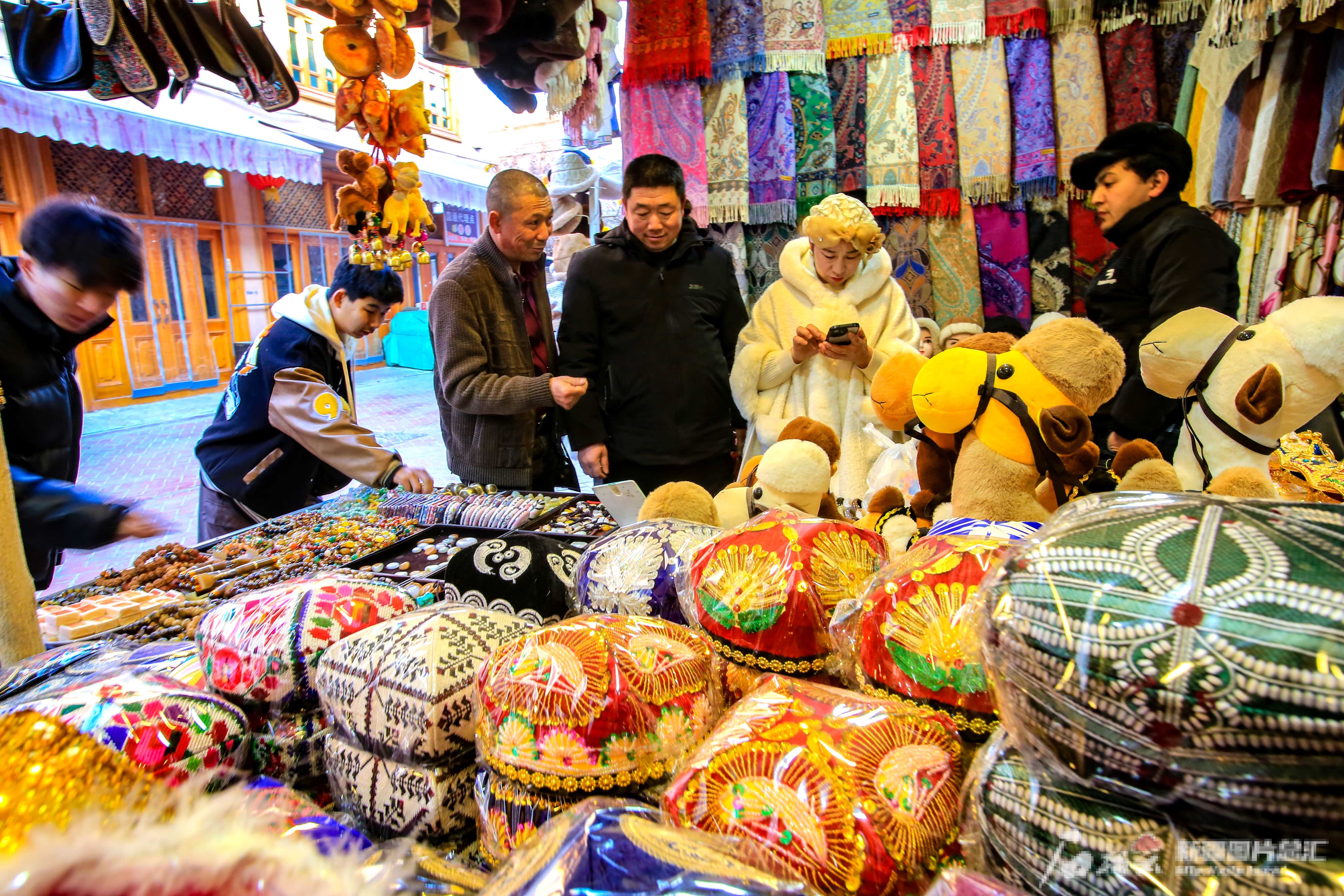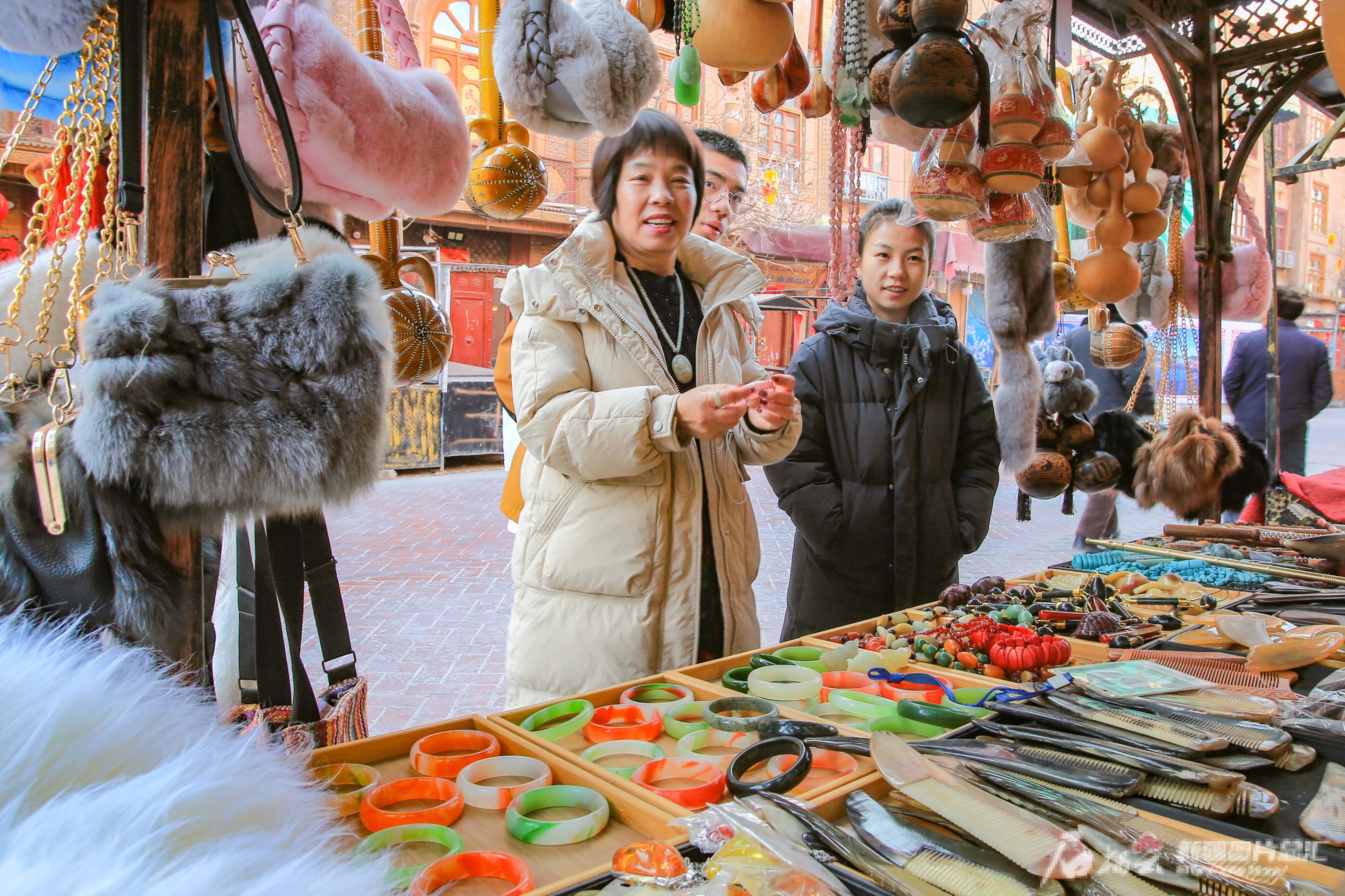 2月10日,游客在喀什古城景区选购纪念品。