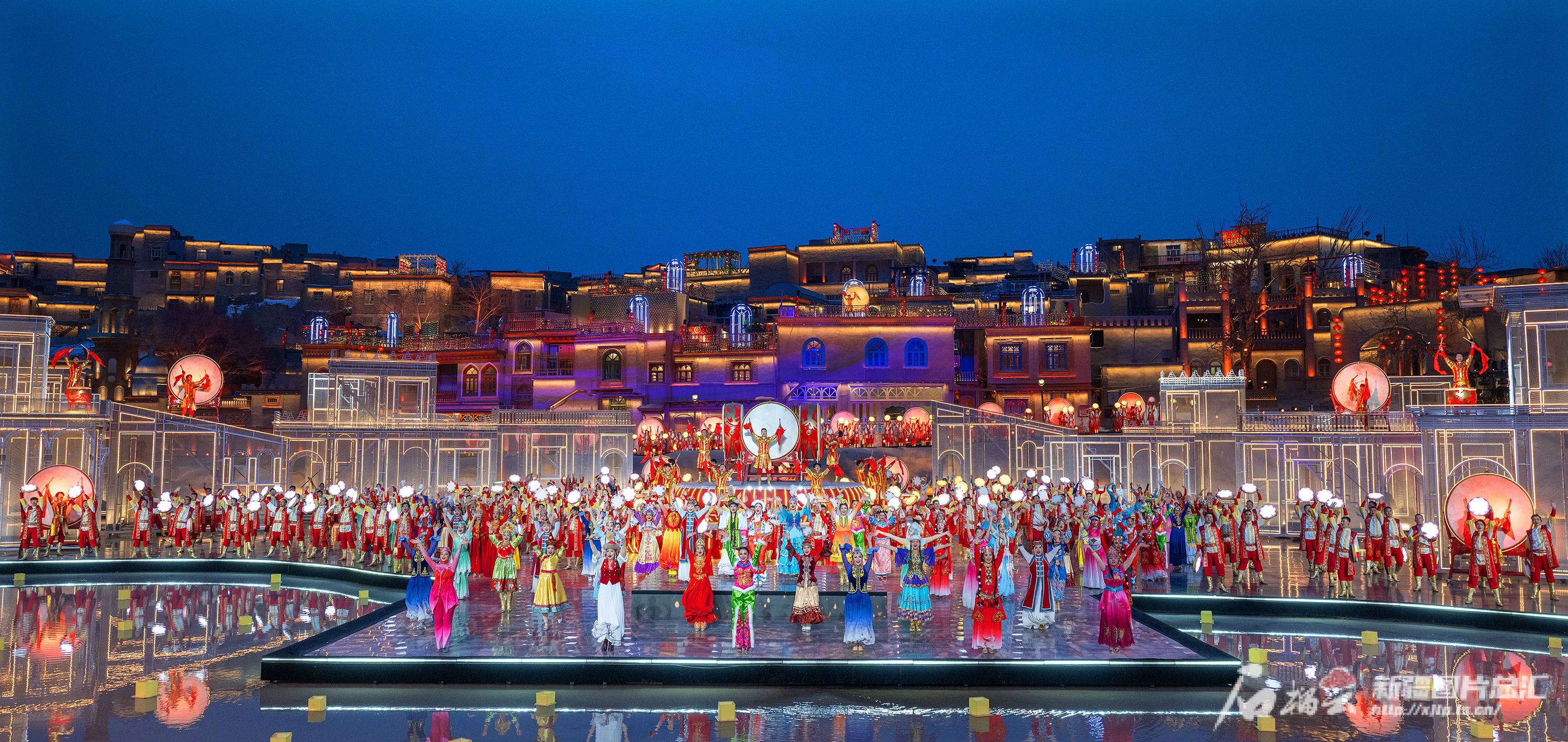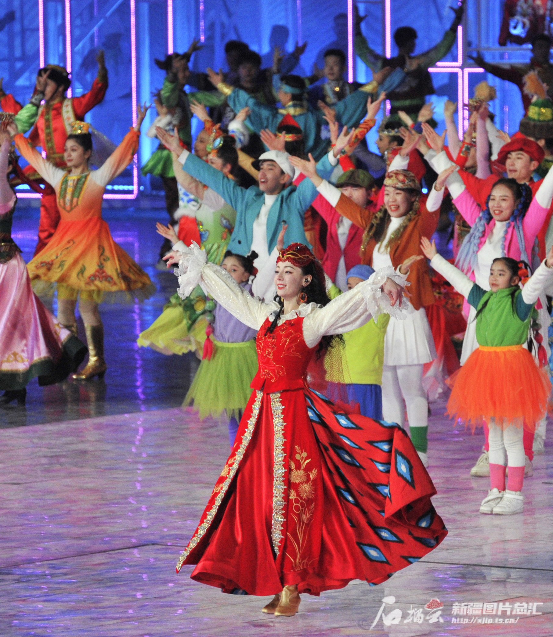 2月9日,演员在表演开场舞《鼓舞龙腾》。石榴云/新疆日报记者 约提克尔·尼加提摄