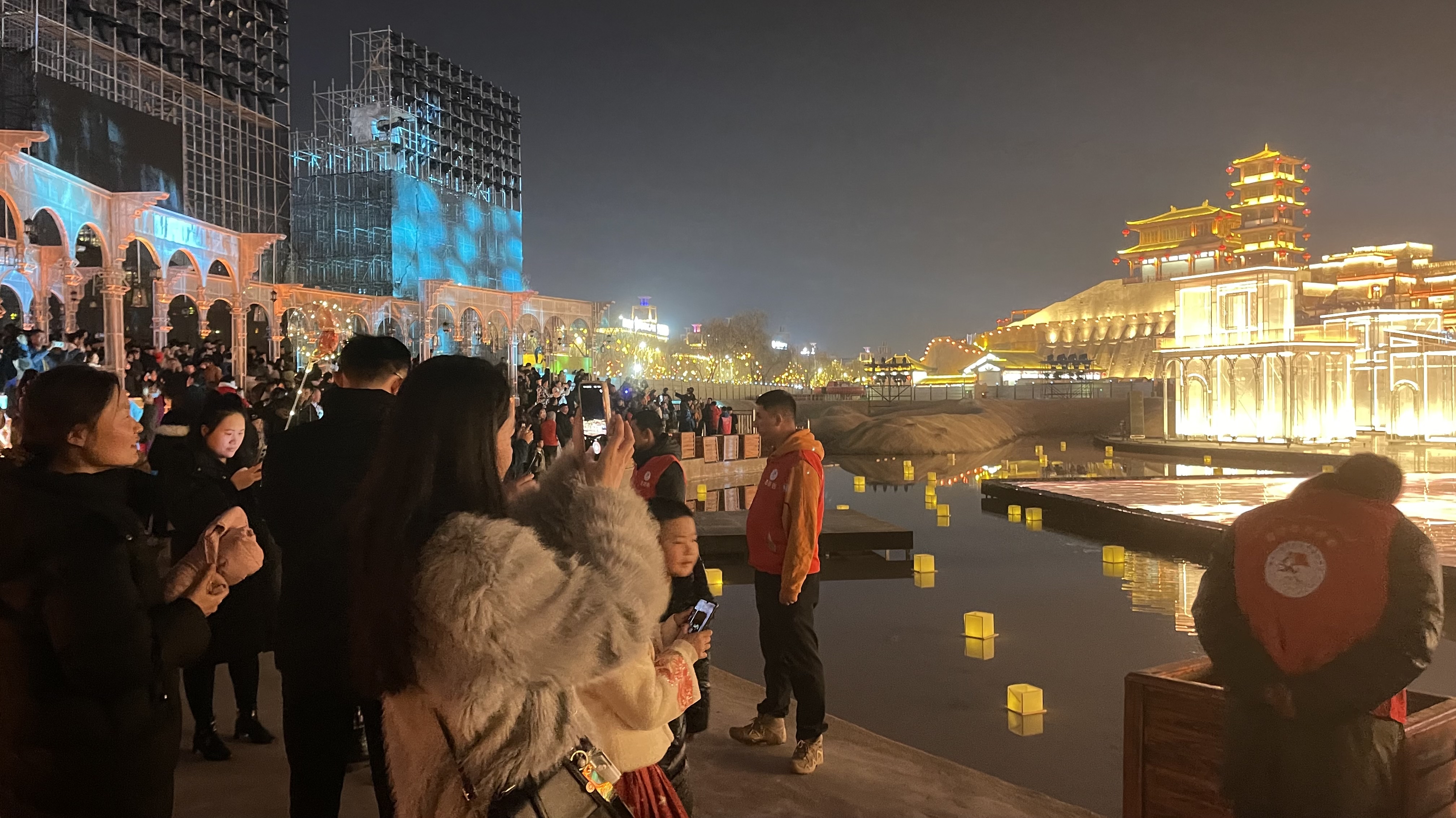 2月11日,游客在总台春晚新疆喀什分会场演出地拍照留念。马丽娜摄
