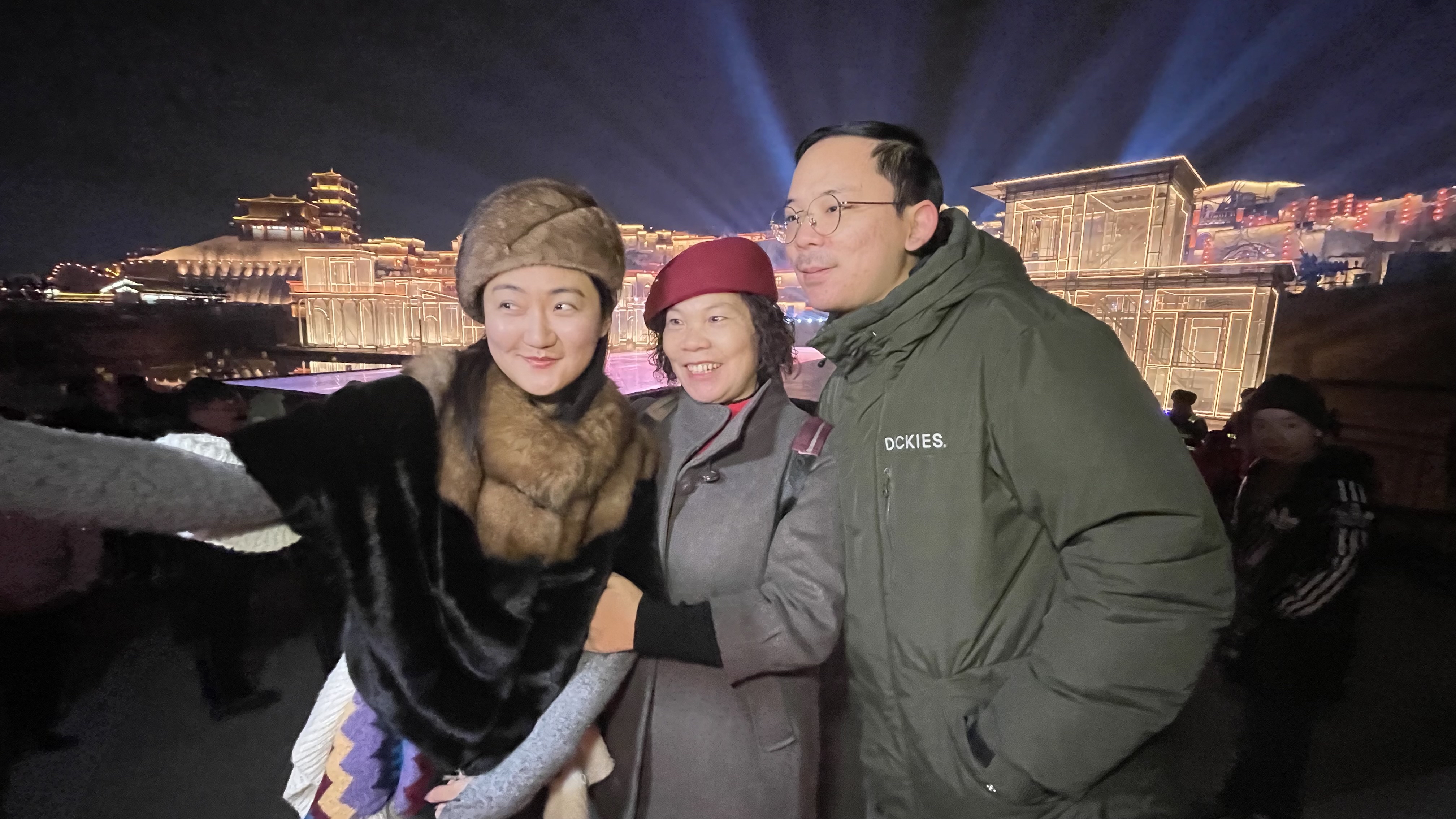 张建华告诉记者,除夕夜,当直播镜头切换至总台春晚新疆喀什分会场的那一刻,新疆的服饰、舞蹈、乐器精美绝伦,他们一家人都沸腾了。“孩子们看完就闹腾着要来看演出舞台,今天到现场后感觉很震撼。这么大的舞台,听说用了21天搭建,还有这么多灯具,这背后是多少人的付出啊,真的很感谢他们。”