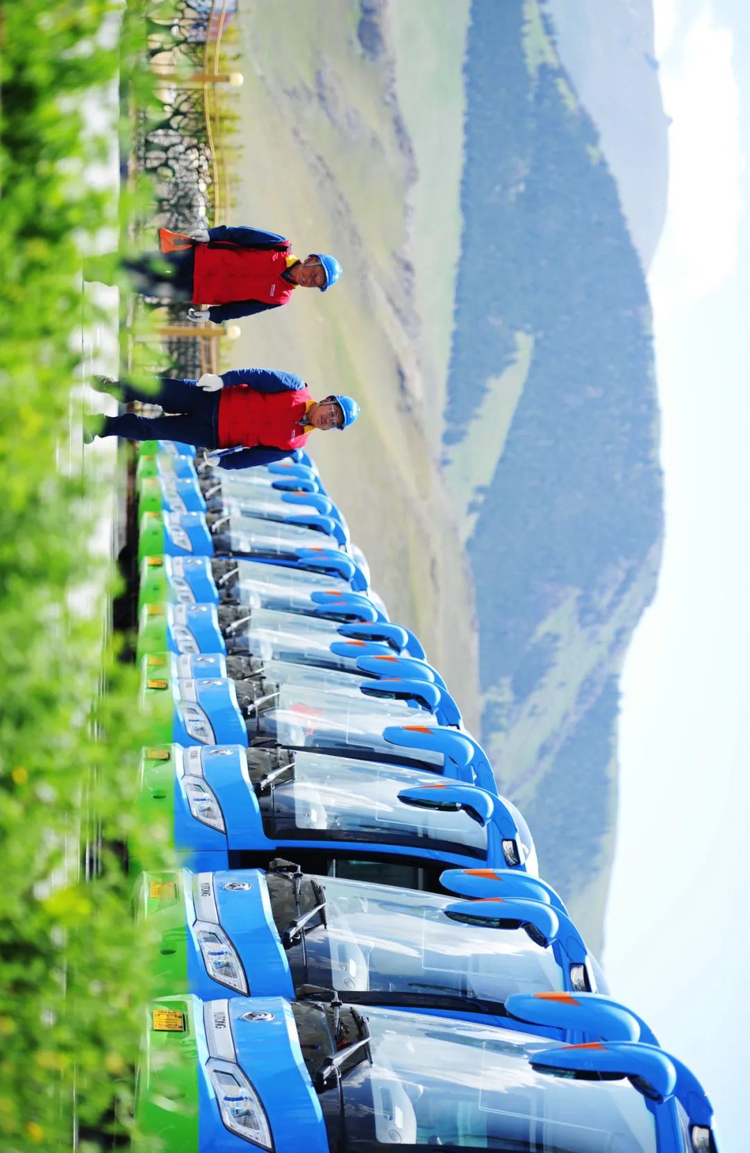员工对赛里木湖景区电动观光车及电力设施进行巡检。摄影师@马元
