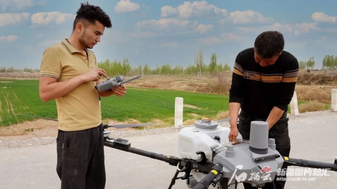 4月12日,在墨玉县喀尔赛镇尤勒滚墩村,植保无人机正以每小时120亩的速度为冬小麦喷洒除草剂。“180亩地,人工打药要4个人干一周,现在90分钟搞定!”尤勒滚墩村村民麦麦提·艾拜手持遥控器,看着无人机螺旋桨搅动气流,将药液精准附着在每一株麦苗上。