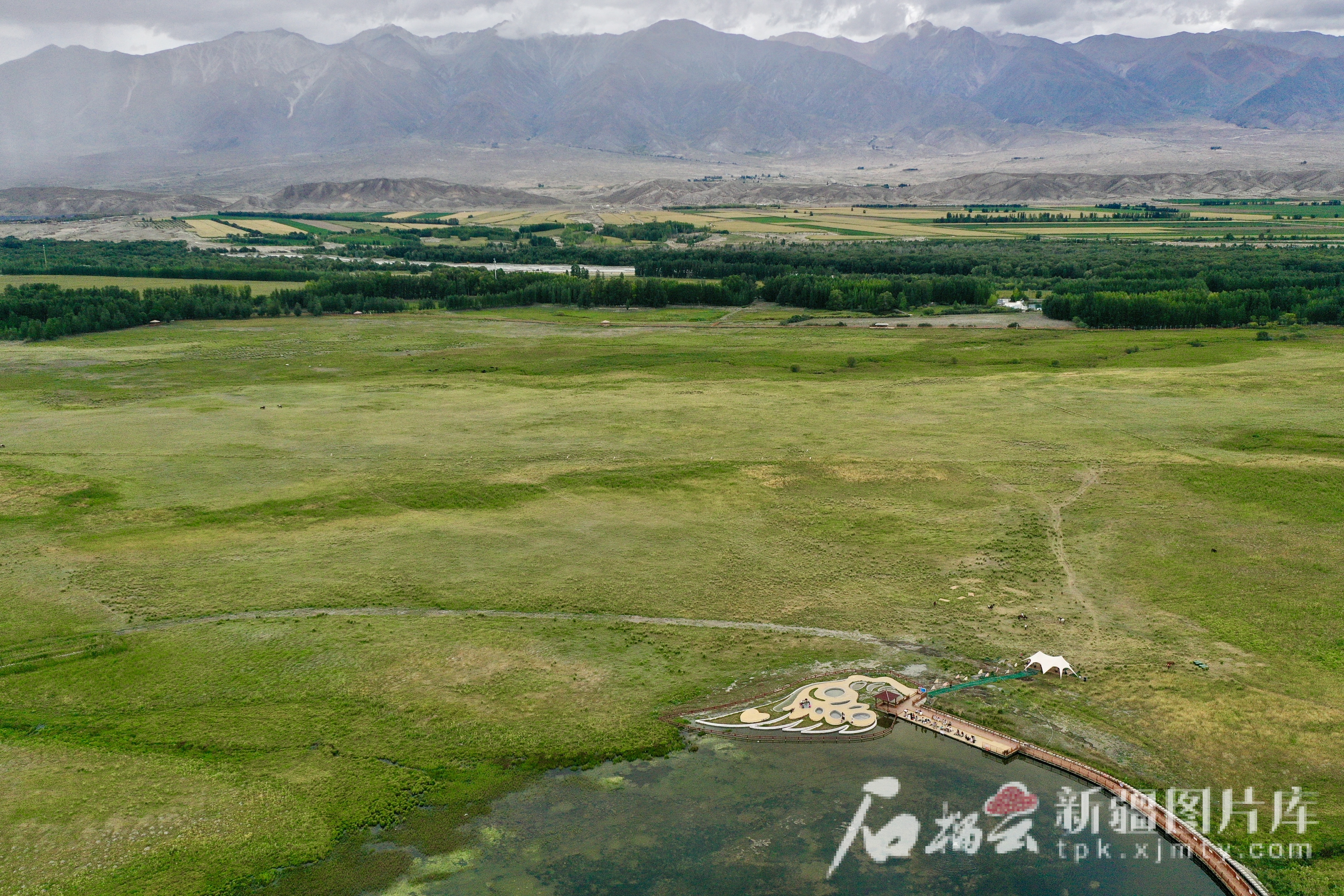 8月15日,俯瞰温泉县博尔塔拉河国家湿地公园。(无人机摄)