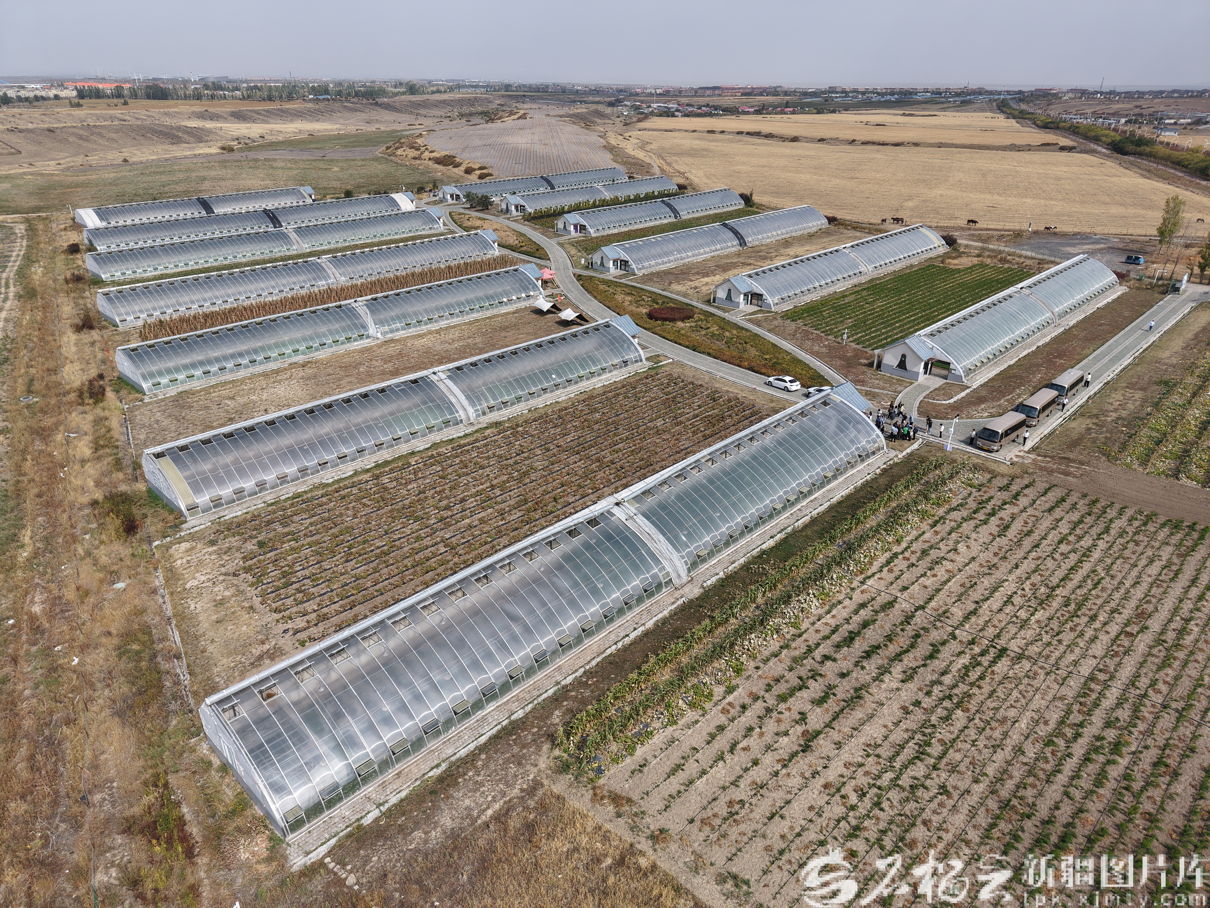 9月8日,俯瞰乌鲁木齐县水西沟镇平西梁村乌鲁木齐膳源生态农业有限公司有机种植基地。