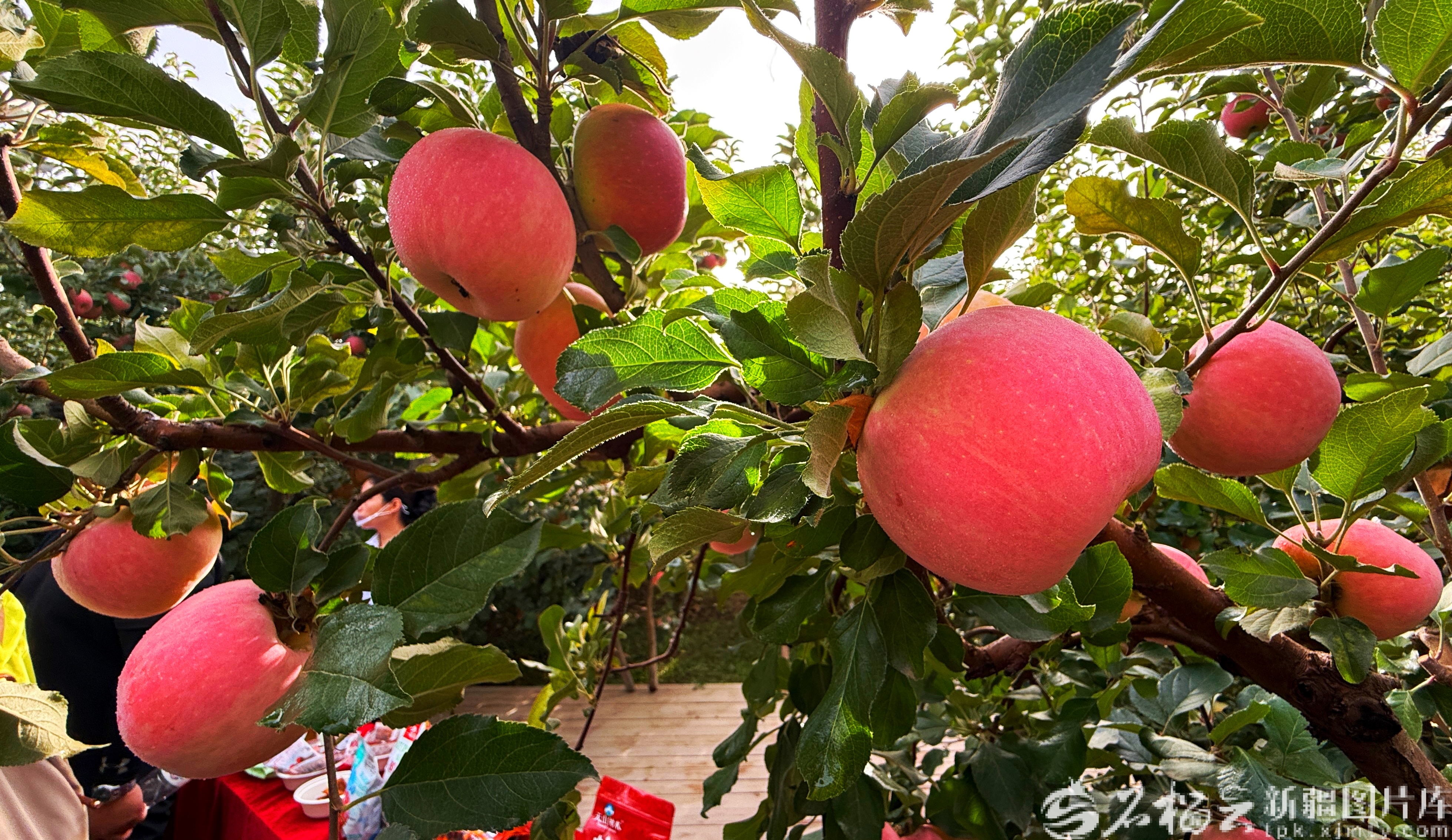 阿克苏地区丰庆园果品农民专业合作社苹果示范园里,缀满枝头的“冰糖心”。石榴云/新疆日报记者 拍热扎提·阿不都 摄