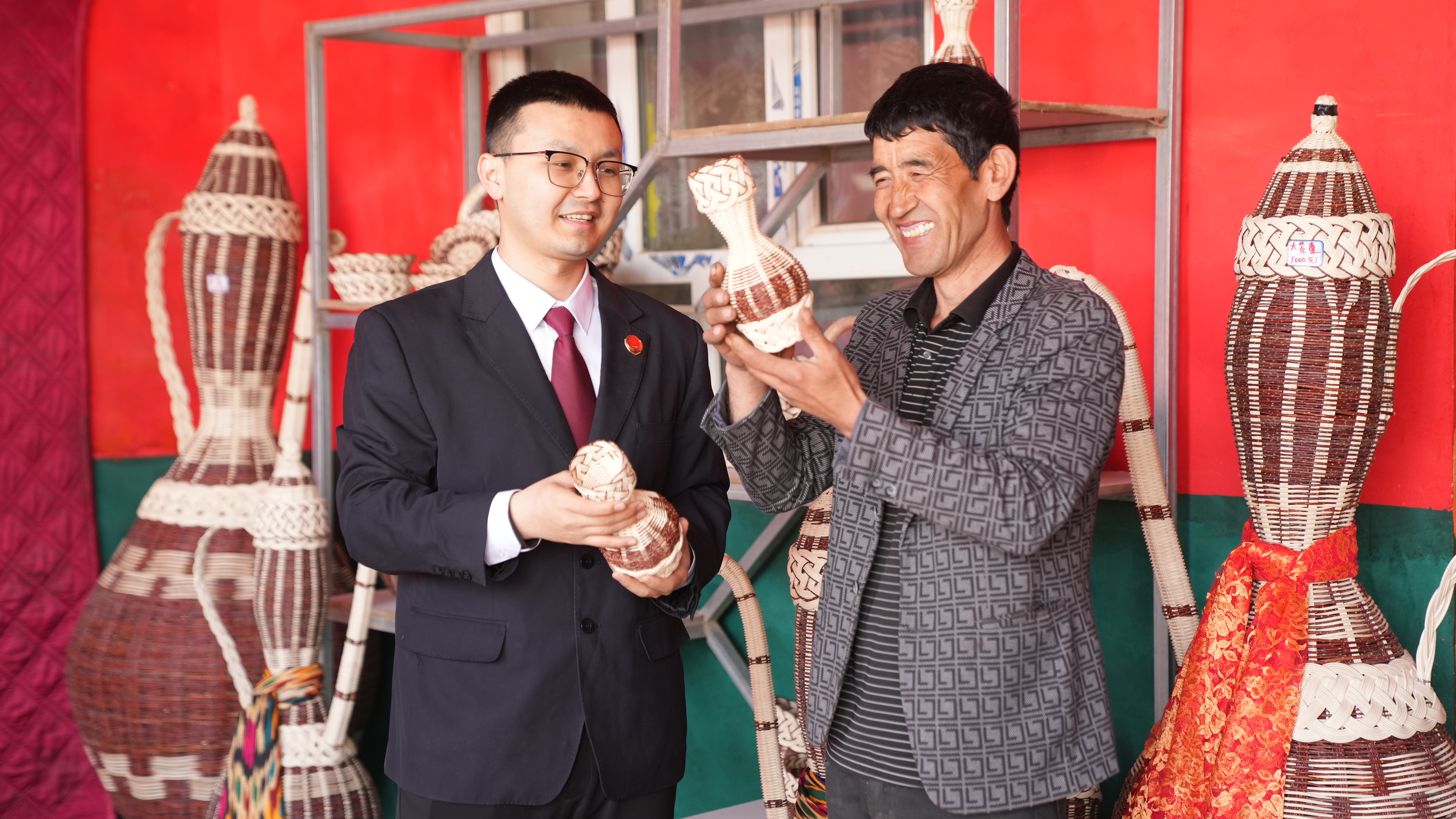 4月,伽师县人民检察院公益诉讼检察官了解非物质文化遗产传统枝条编织技艺传承情况。通讯员 阿卜莱提·热西提摄