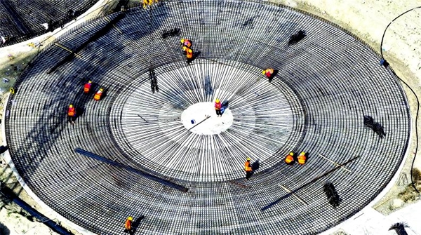 工人在位于铁门关经济技术开发区的新疆绿洲生物科技有限公司特种玉米深加工项目现场作业(10月2日无人机摄)。谢江林摄